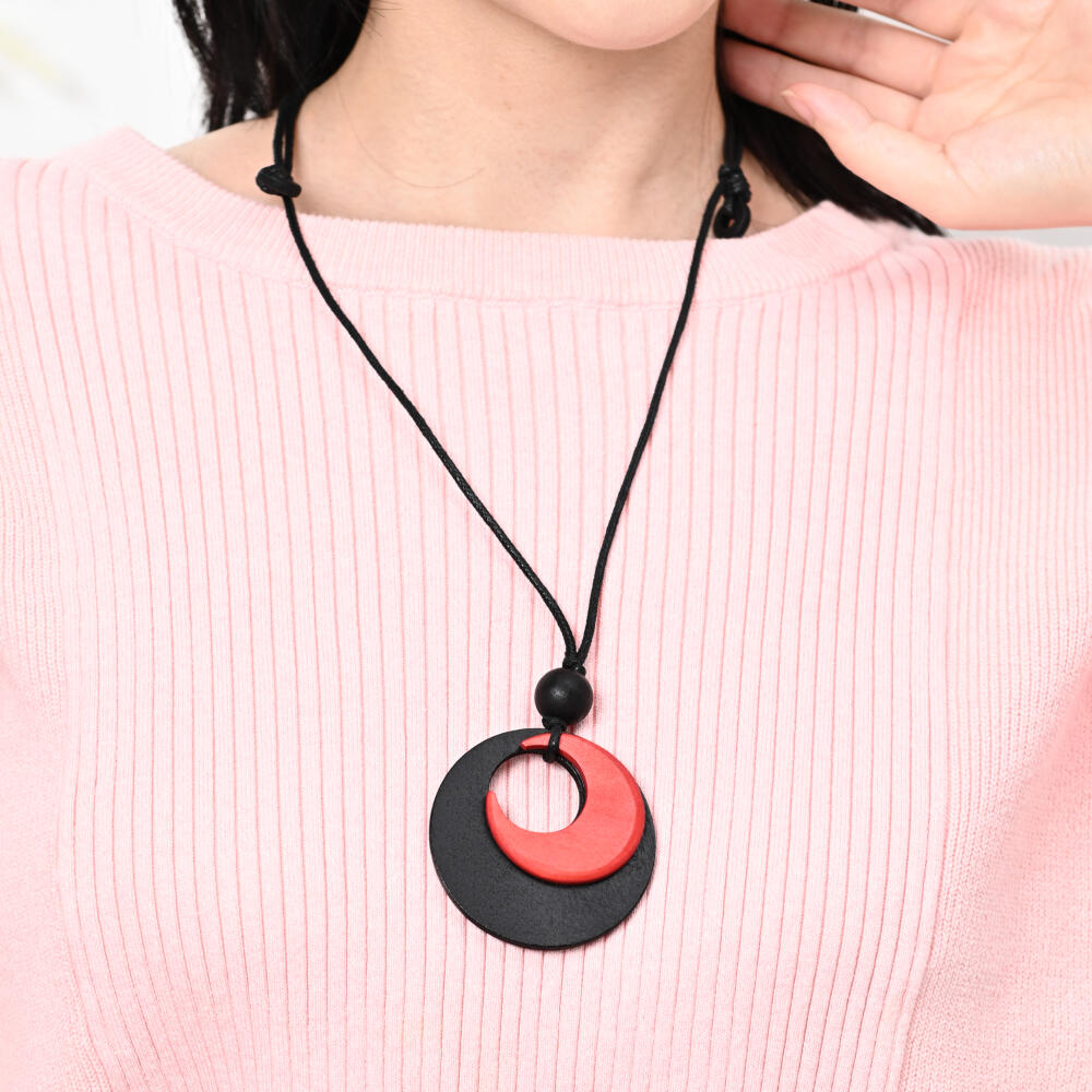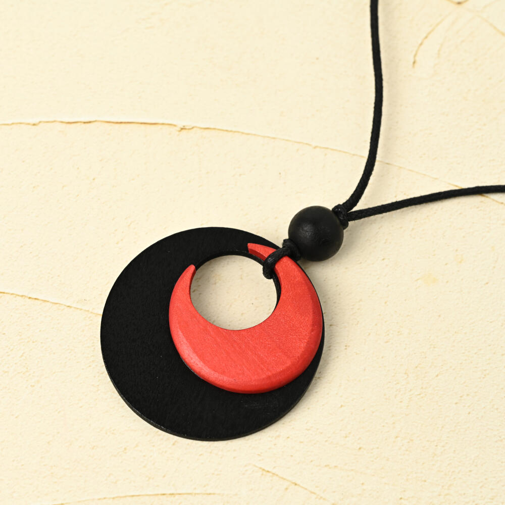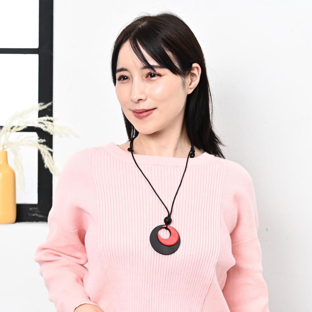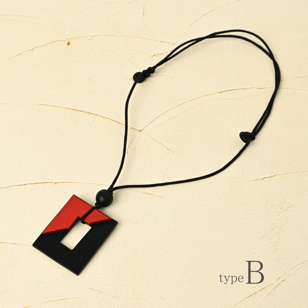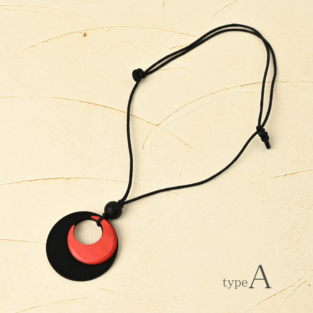 ネックレス ペンダント レディース ウッド 赤 黒 バイカラー オシャレ 天然素材 カジュアル N