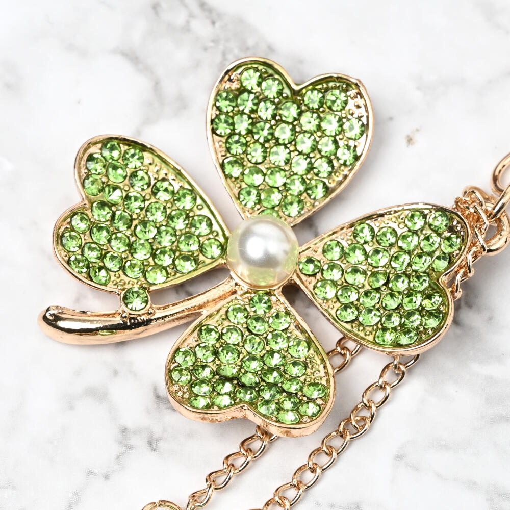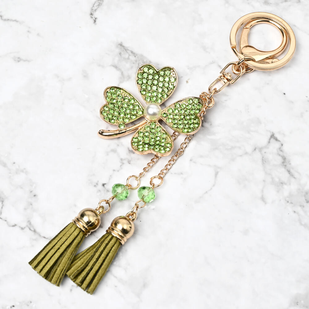 キーホルダー バッグチャーム レディース クローバー 四葉 ラインストーン キラキラ タッセル KH