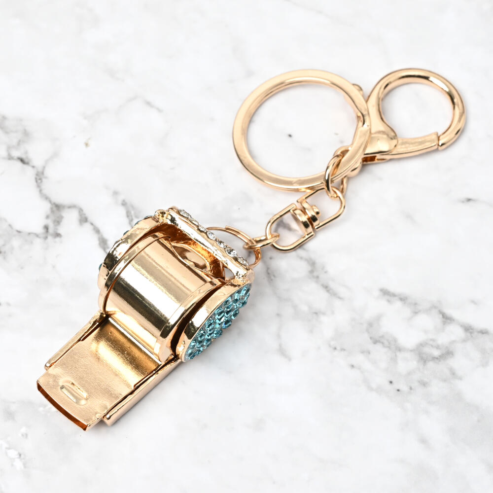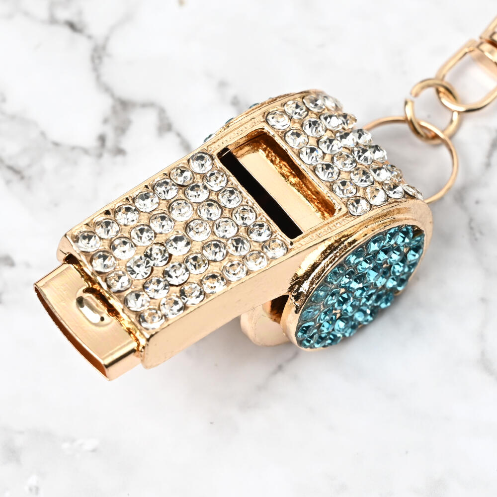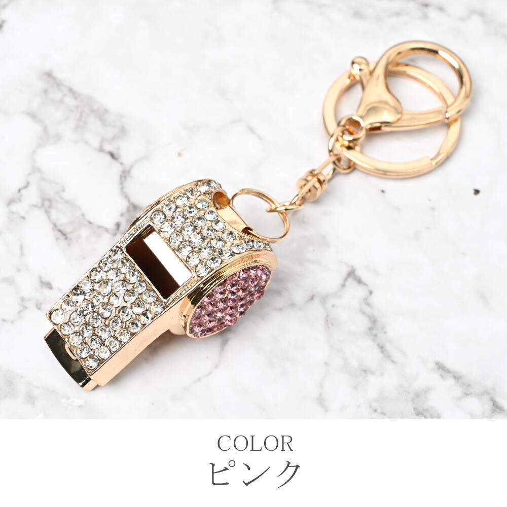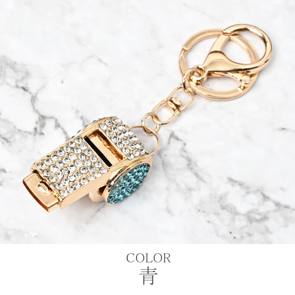 キーホルダー バッグチャーム レディース ホイッスル 笛 ピンク 青 ラインストーン キラキラ KH
