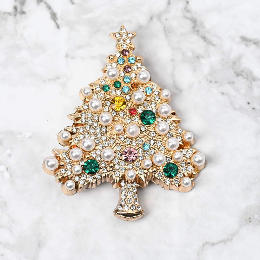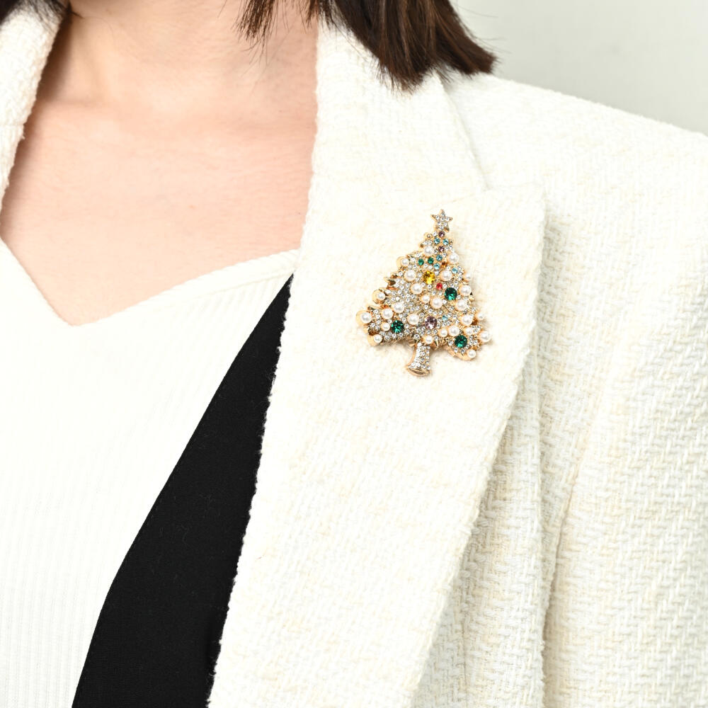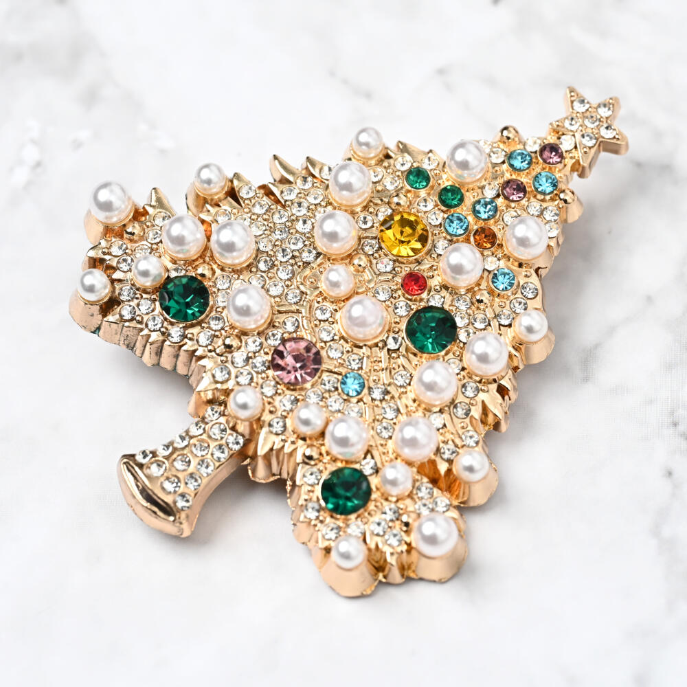 クリスマス ブローチ クリスマスツリー キラキラ パール ゴールド 豪華 可愛い プレゼント BR