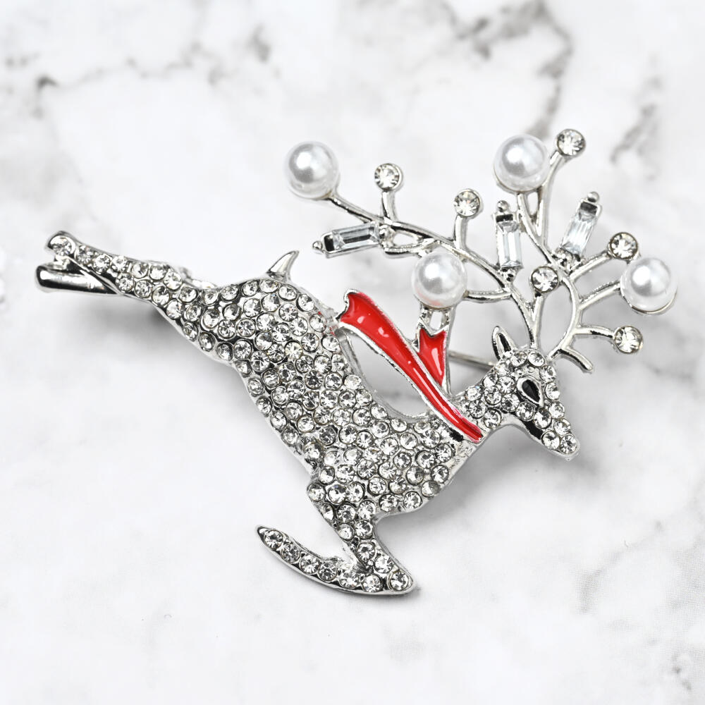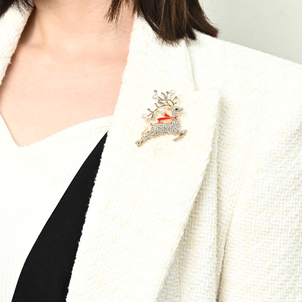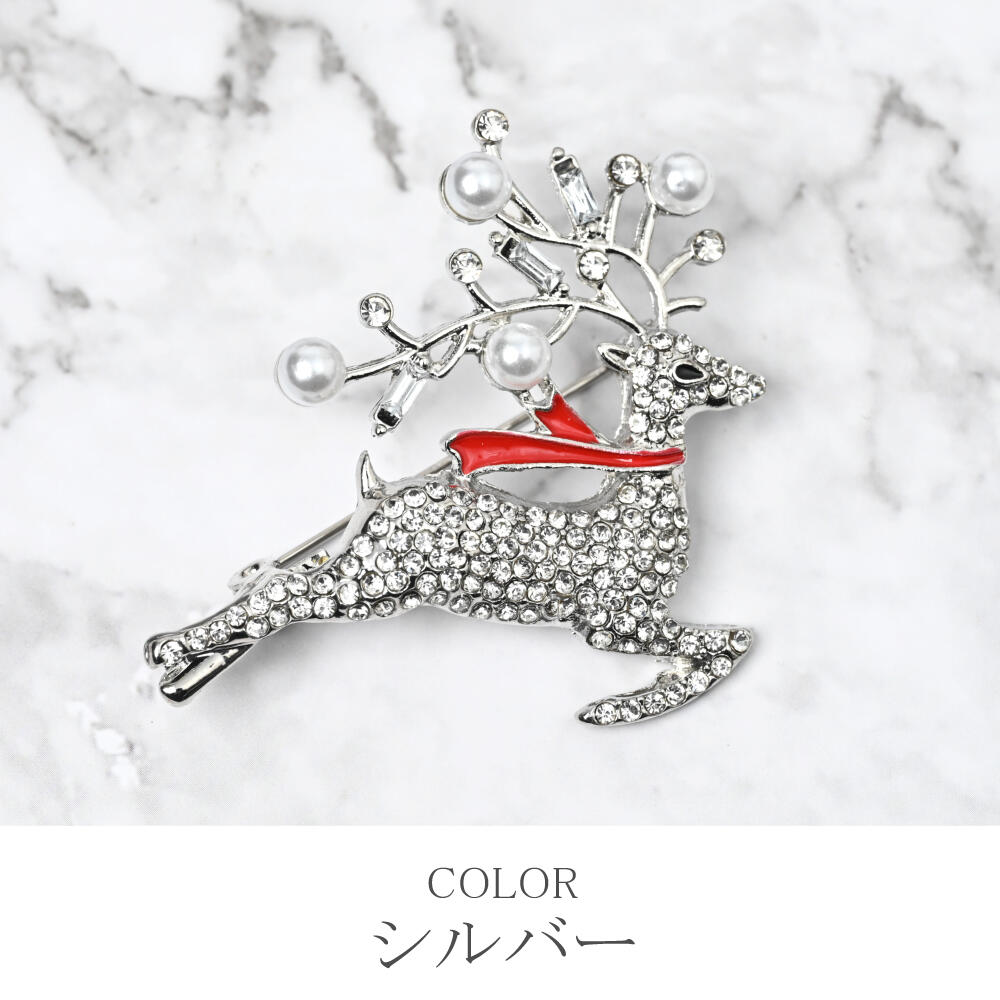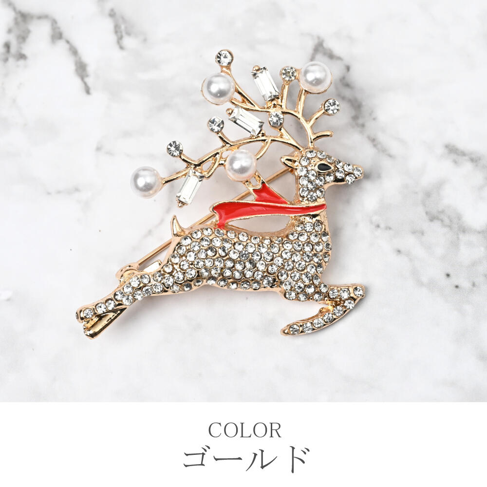 クリスマス ブローチ トナカイ キラキラ パール ゴールド シルバー 可愛い プレゼント BR