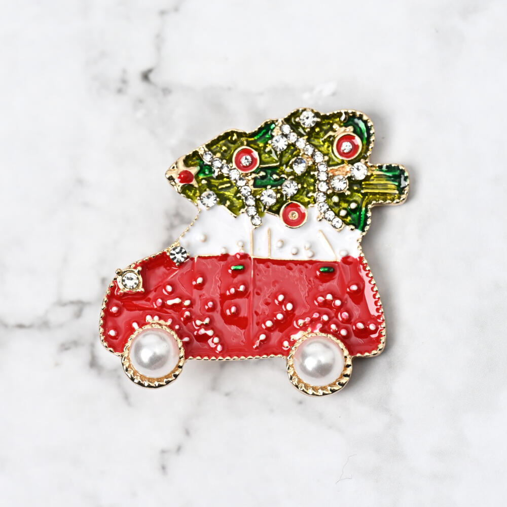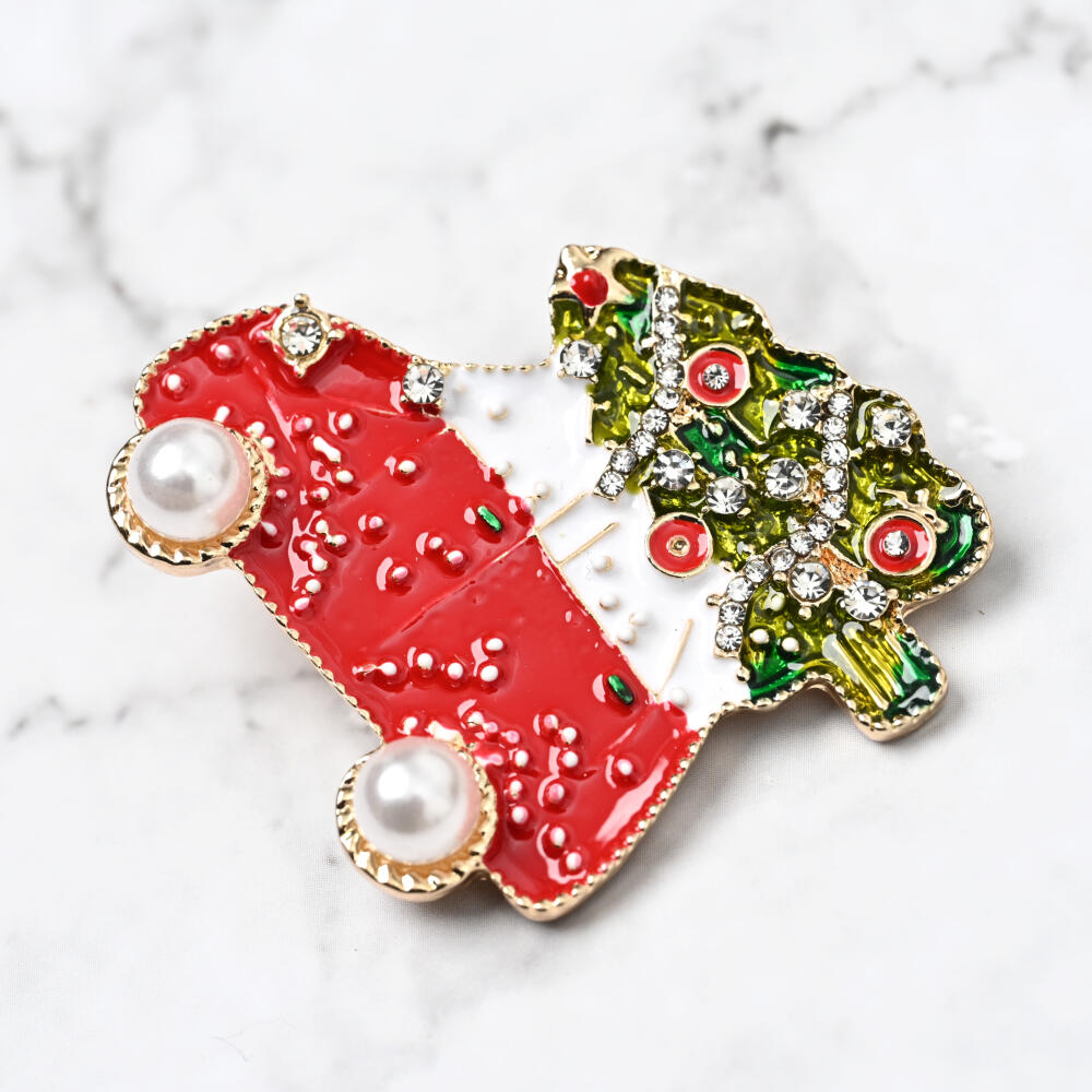 クリスマス ブローチ クリスマスツリー もみの木 車キラキラ 赤 パール 可愛い プレゼント BR