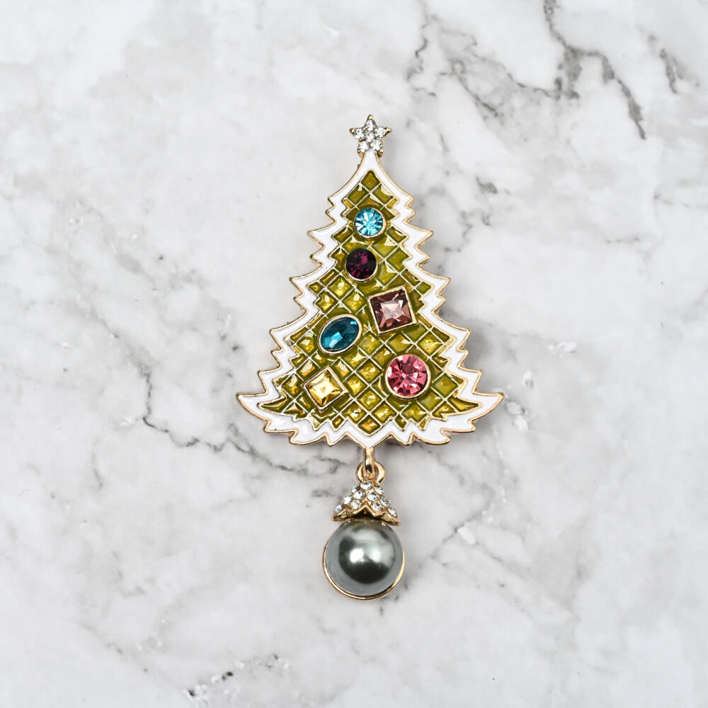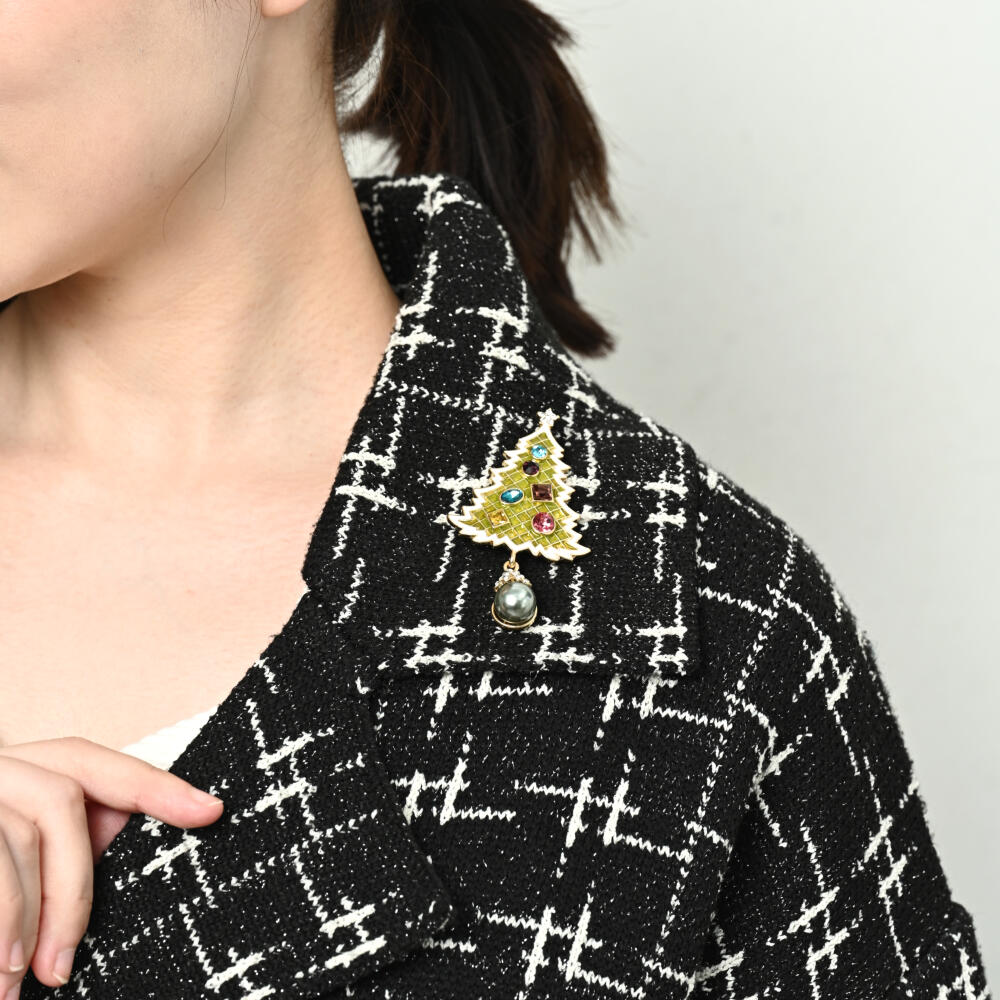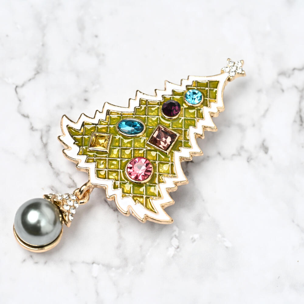クリスマス ブローチ クリスマスツリー もみの木 雪 キラキラ パール 可愛い プレゼント 贈り物 BR
