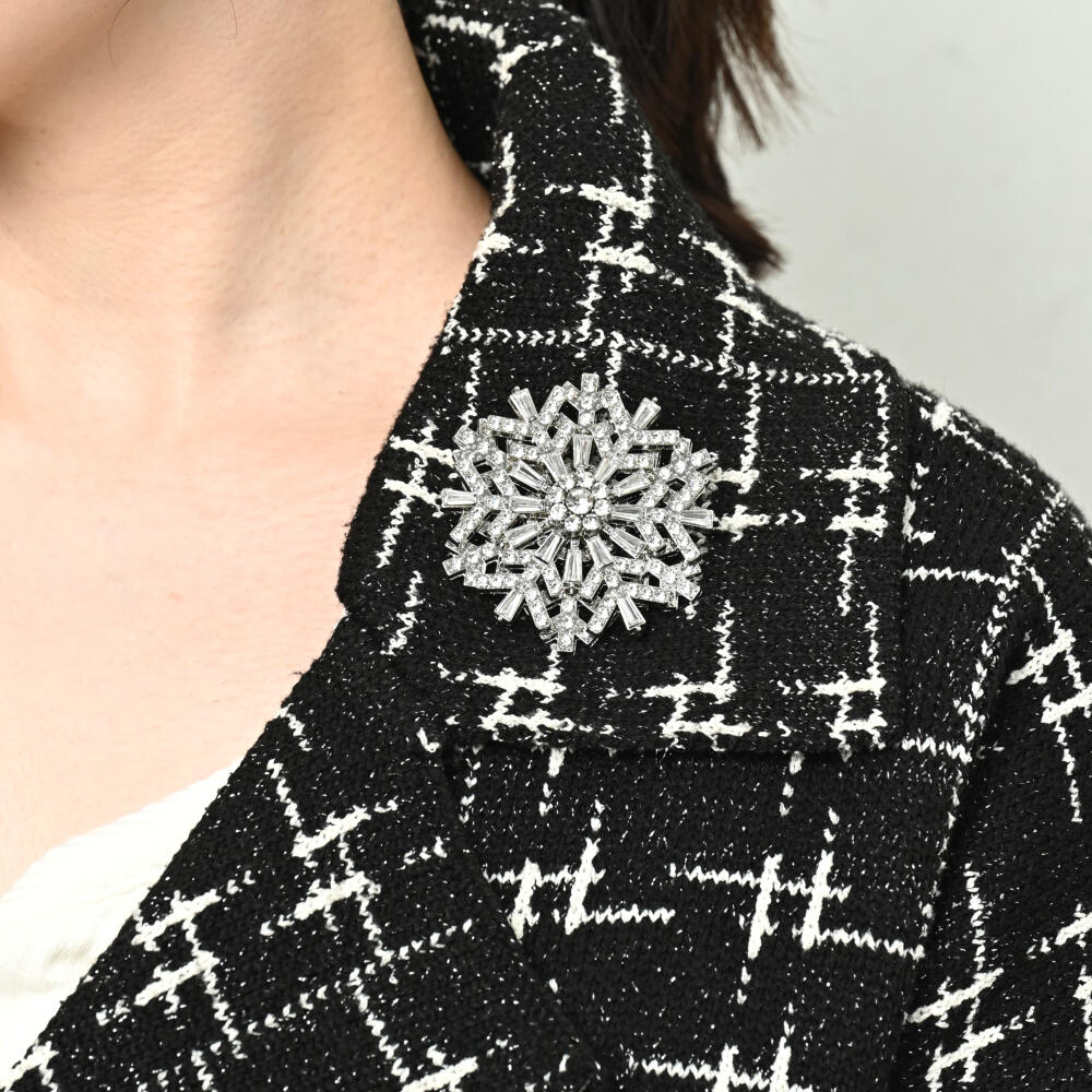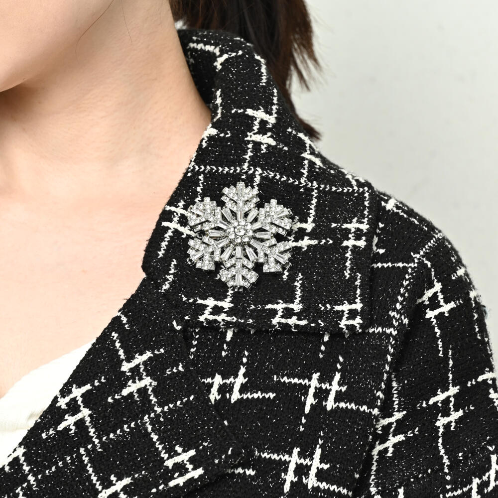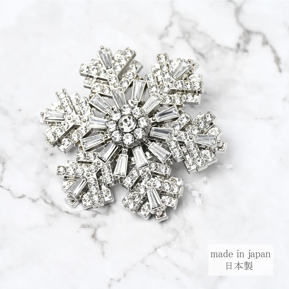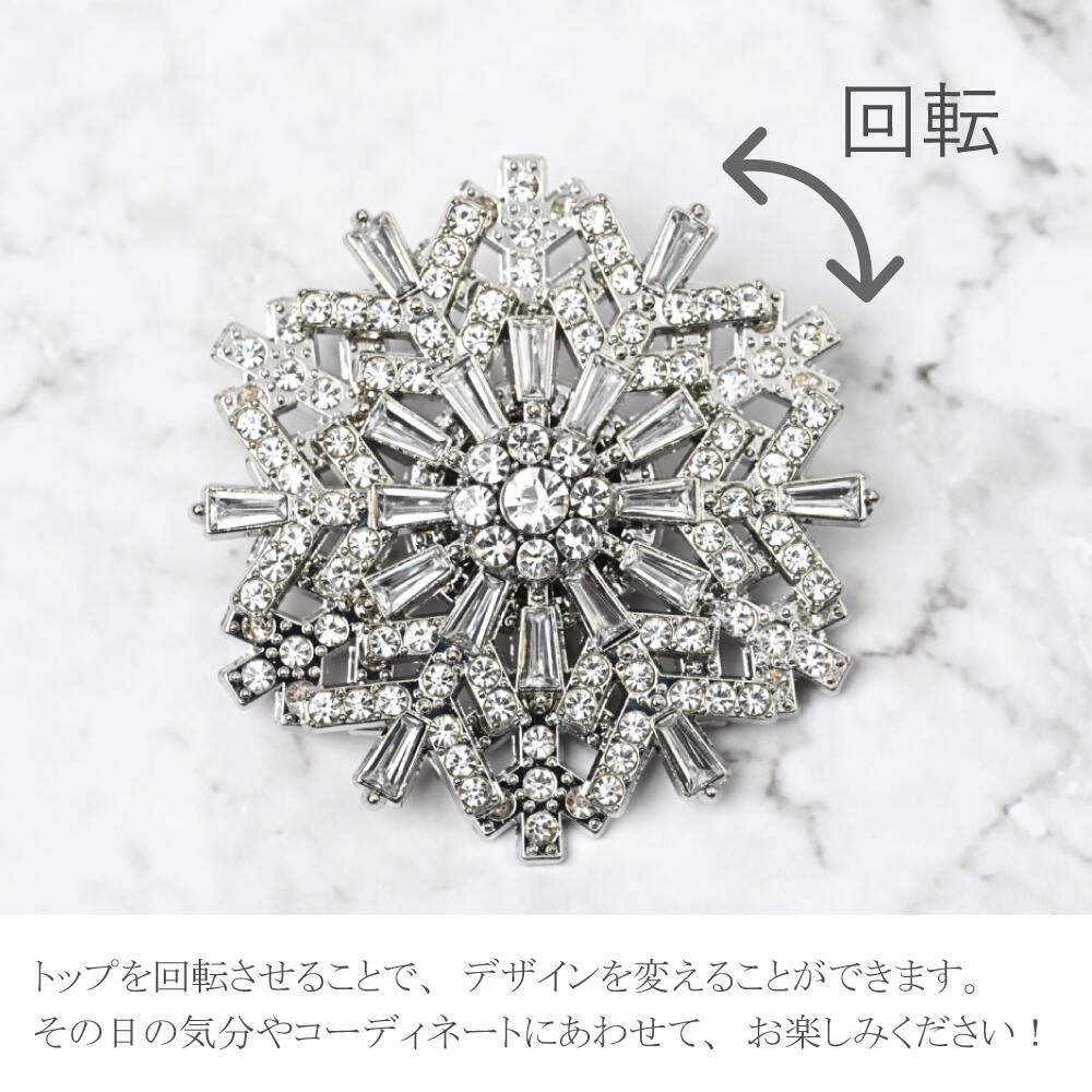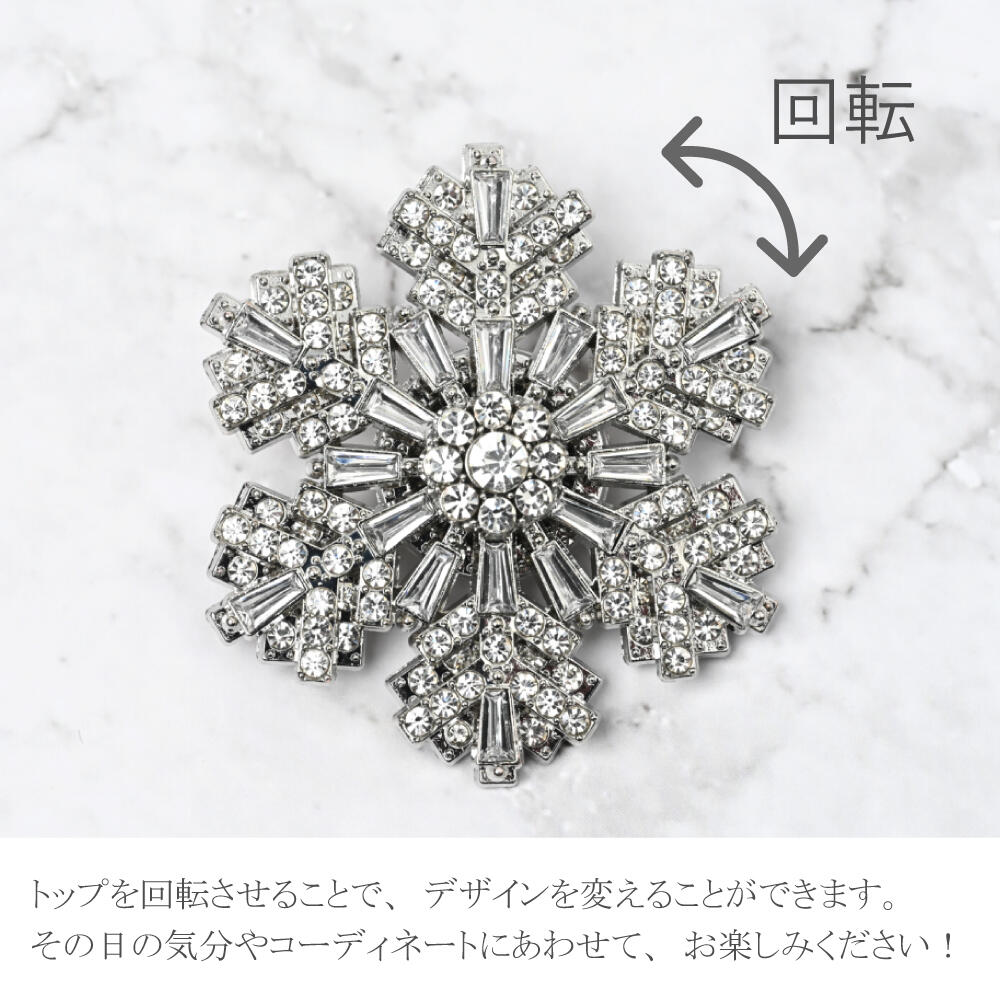 日本製 クリスマス ブローチ 雪の結晶 キラキラ 大きめ プレゼント 贈り物 回転 BR