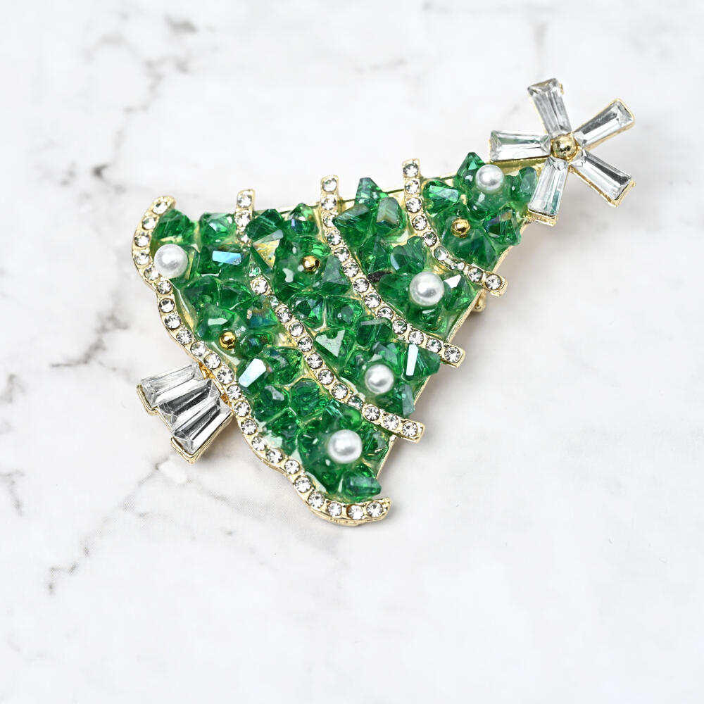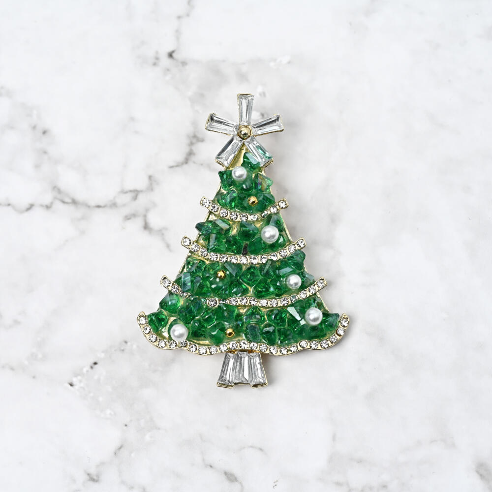 クリスマス ブローチ クリスマスツリー もみの木 緑 キラキラ パール 大きめ プレゼント BR
