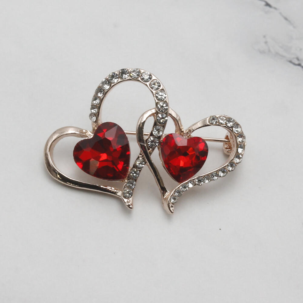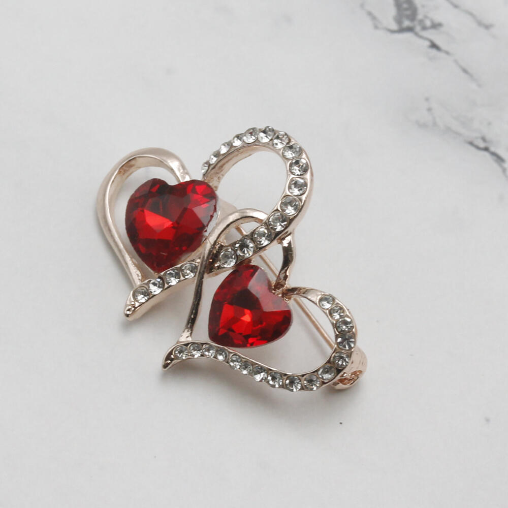 ブローチ レディース ハート 赤 キラキラ ラインストーン ビジュ バレンタイン プレゼント BR