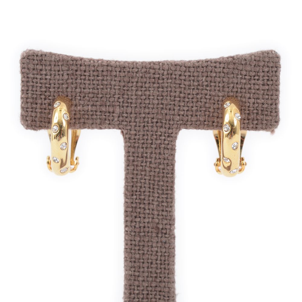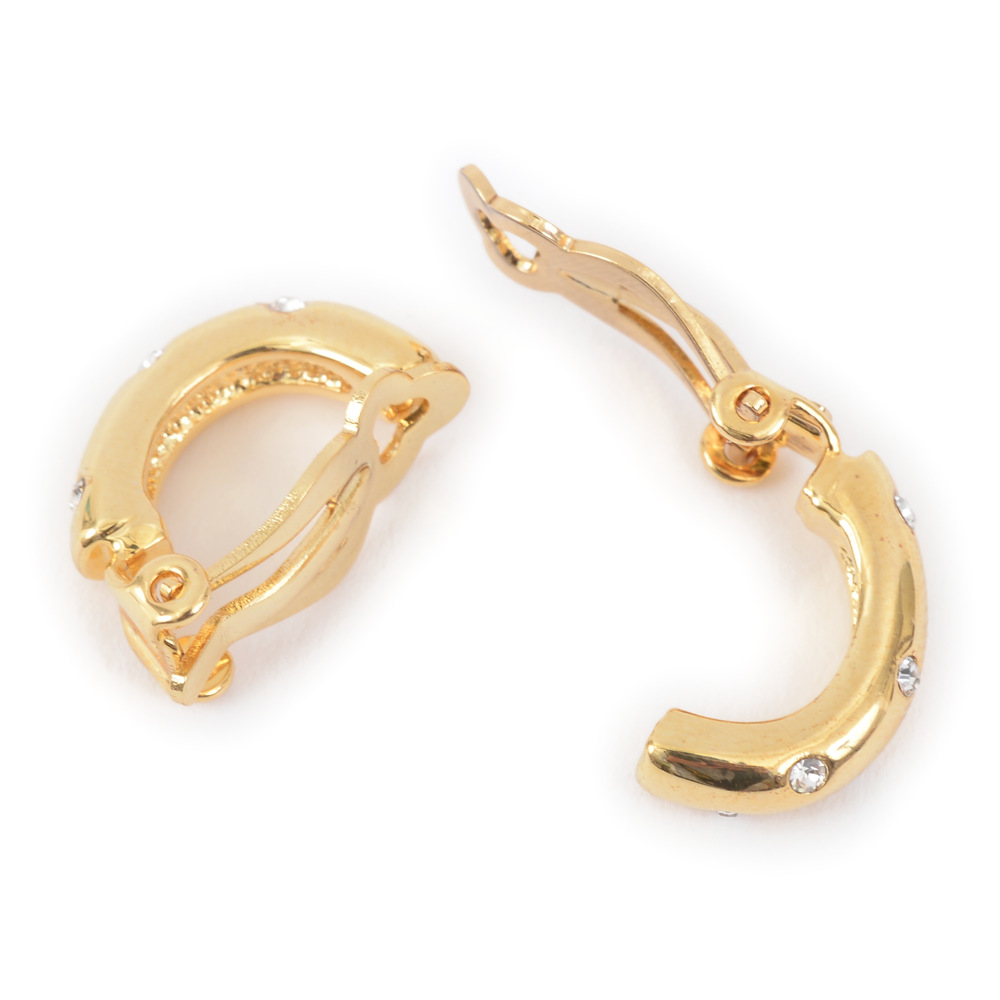 再入荷 ラインストーンとメタルのセミフープイヤリング