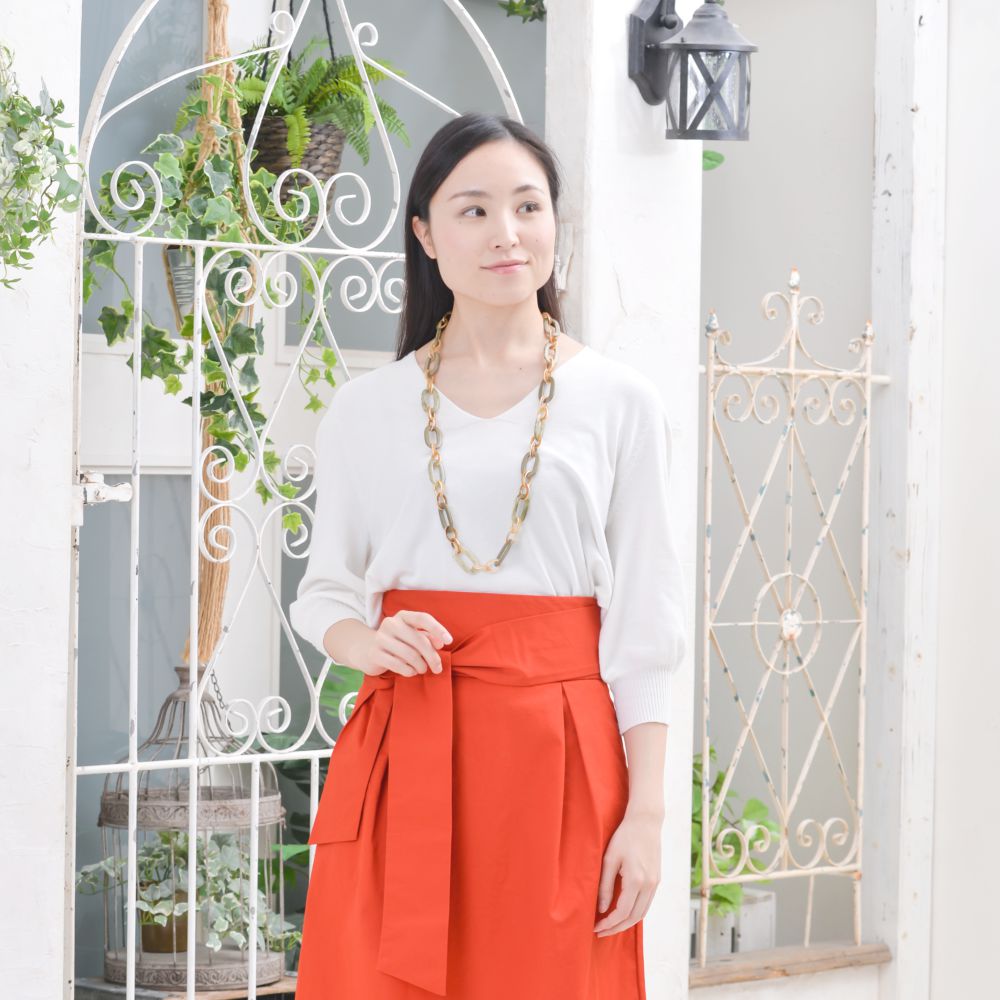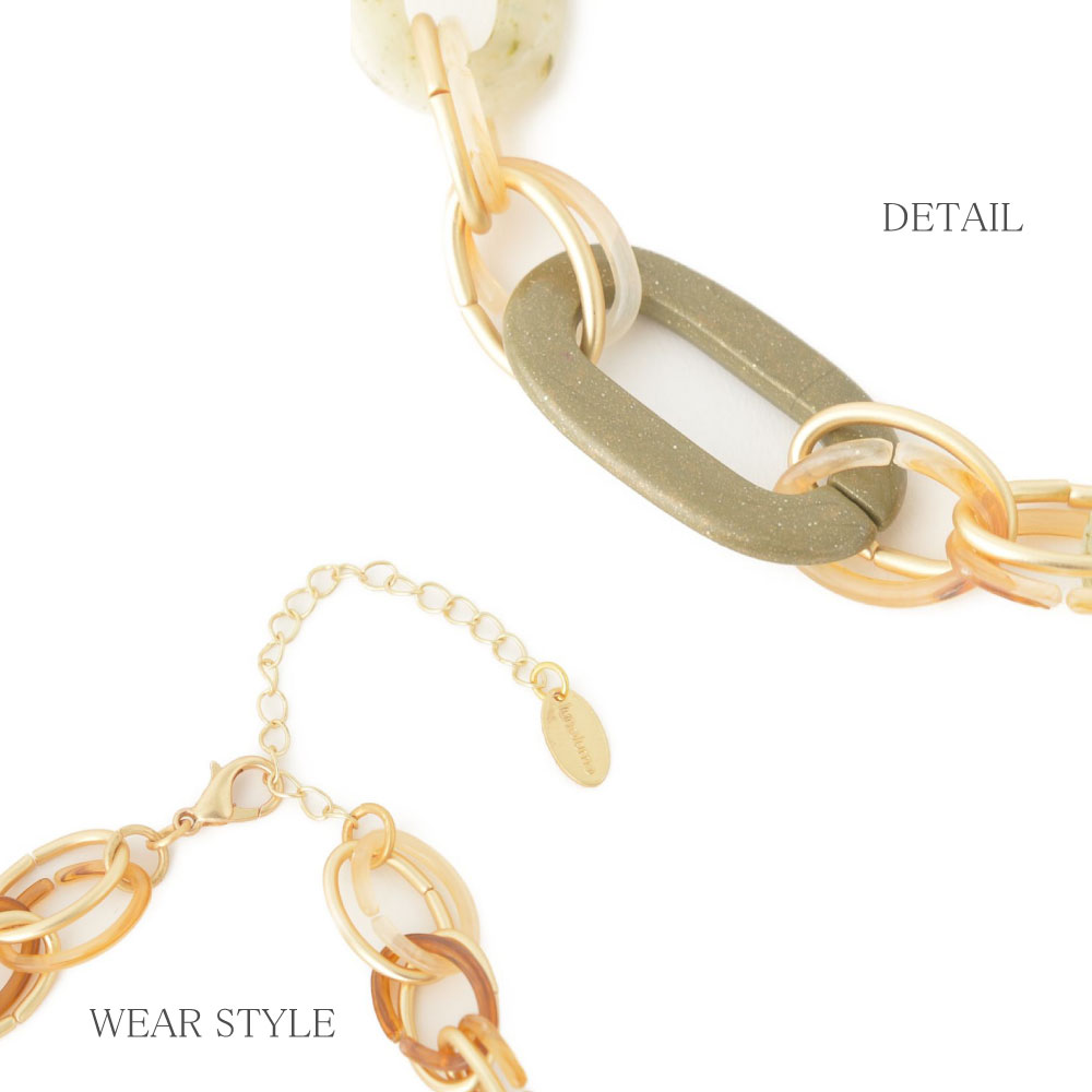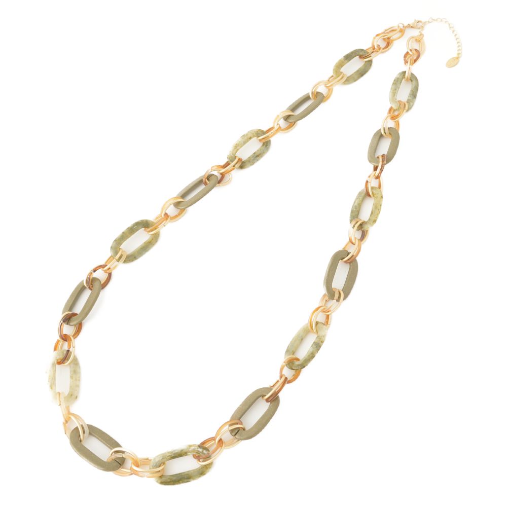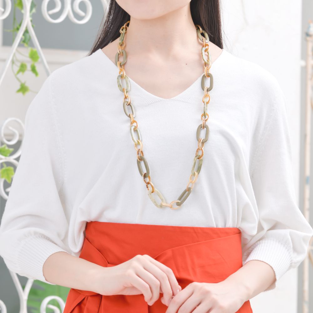 ネックレス レディース スモーキーグリーン ゴールド チェーン繋ぎ ロングネックレス N