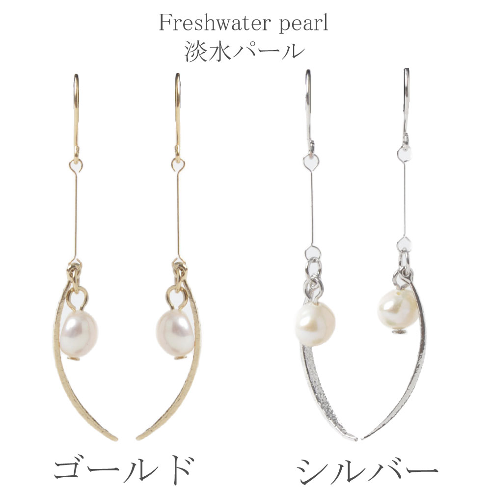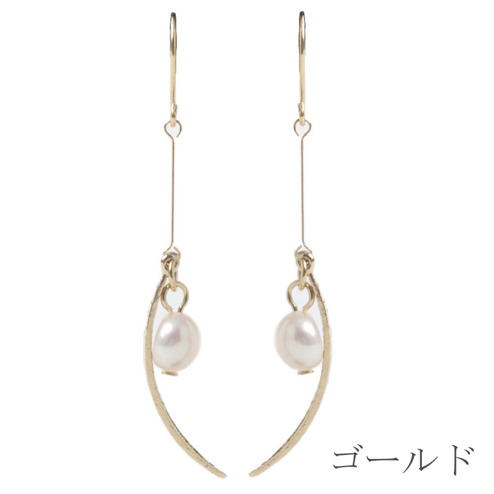 SALE ピアス レディース 淡水パール パール ゴールド シルバー メタル カーブ 表面加工 PI