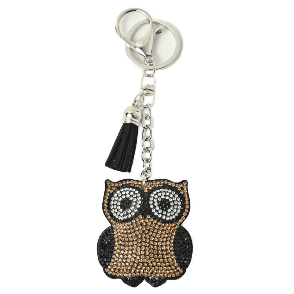 キーホルダー バッグチャーム フクロウ 梟 ふくろう キラキラ ブラウン レディース プレゼント KH