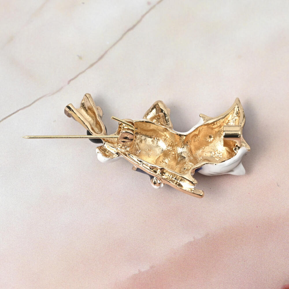 ブローチ レディース 猫 ネコ ねこ 魔女猫 ハロウィン ほうき 動物 可愛い プレゼント 青 B