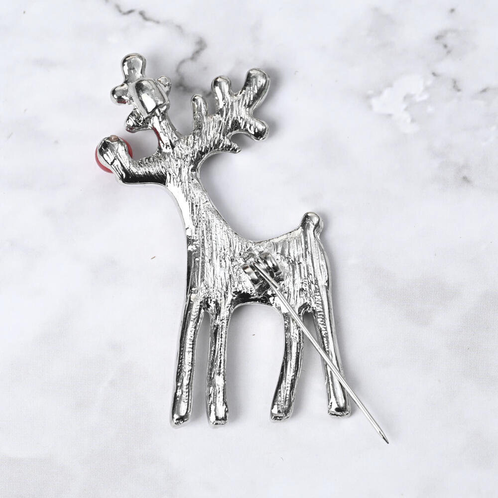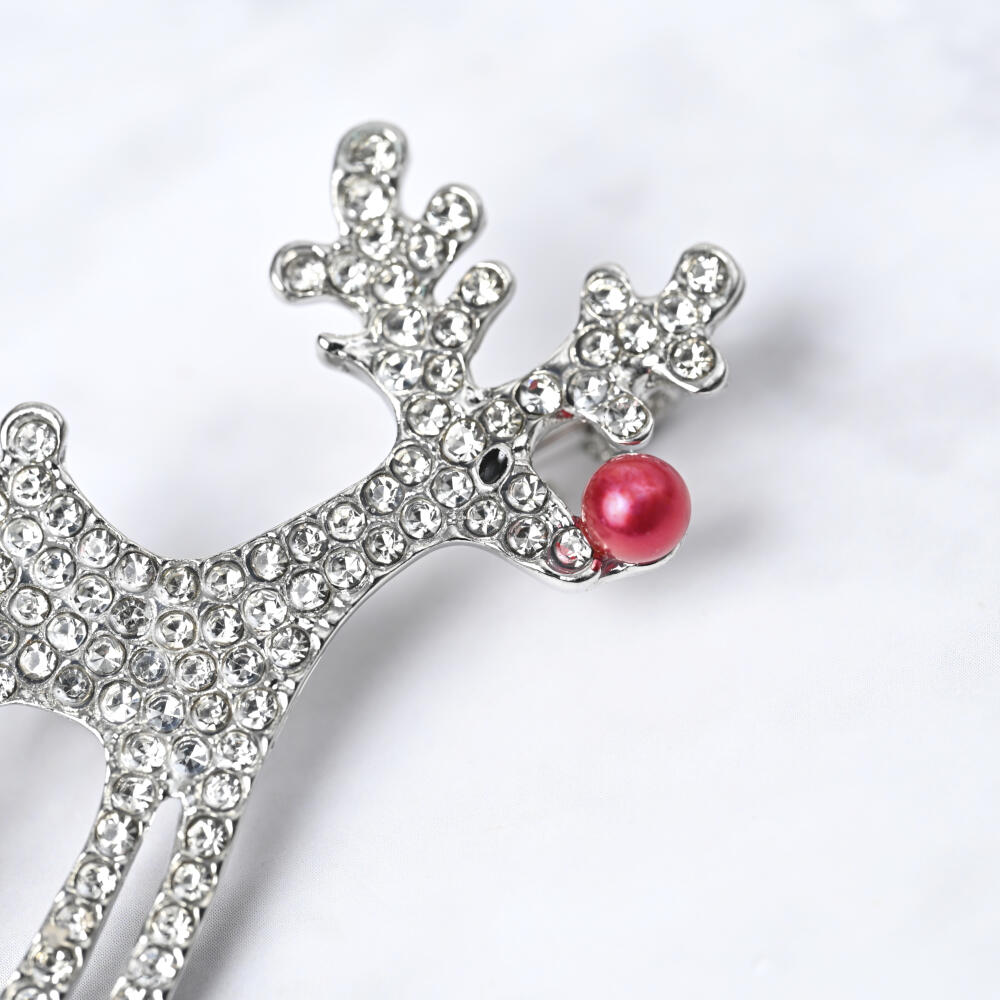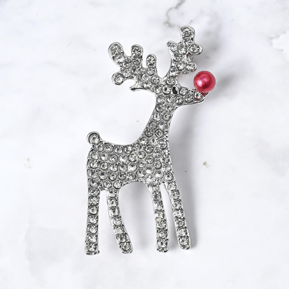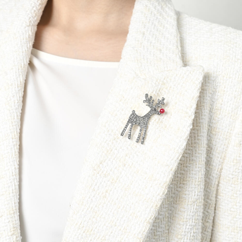クリスマス ブローチ トナカイ 赤鼻 キラキラ ラインストーン シルバー 可愛い プレゼント B