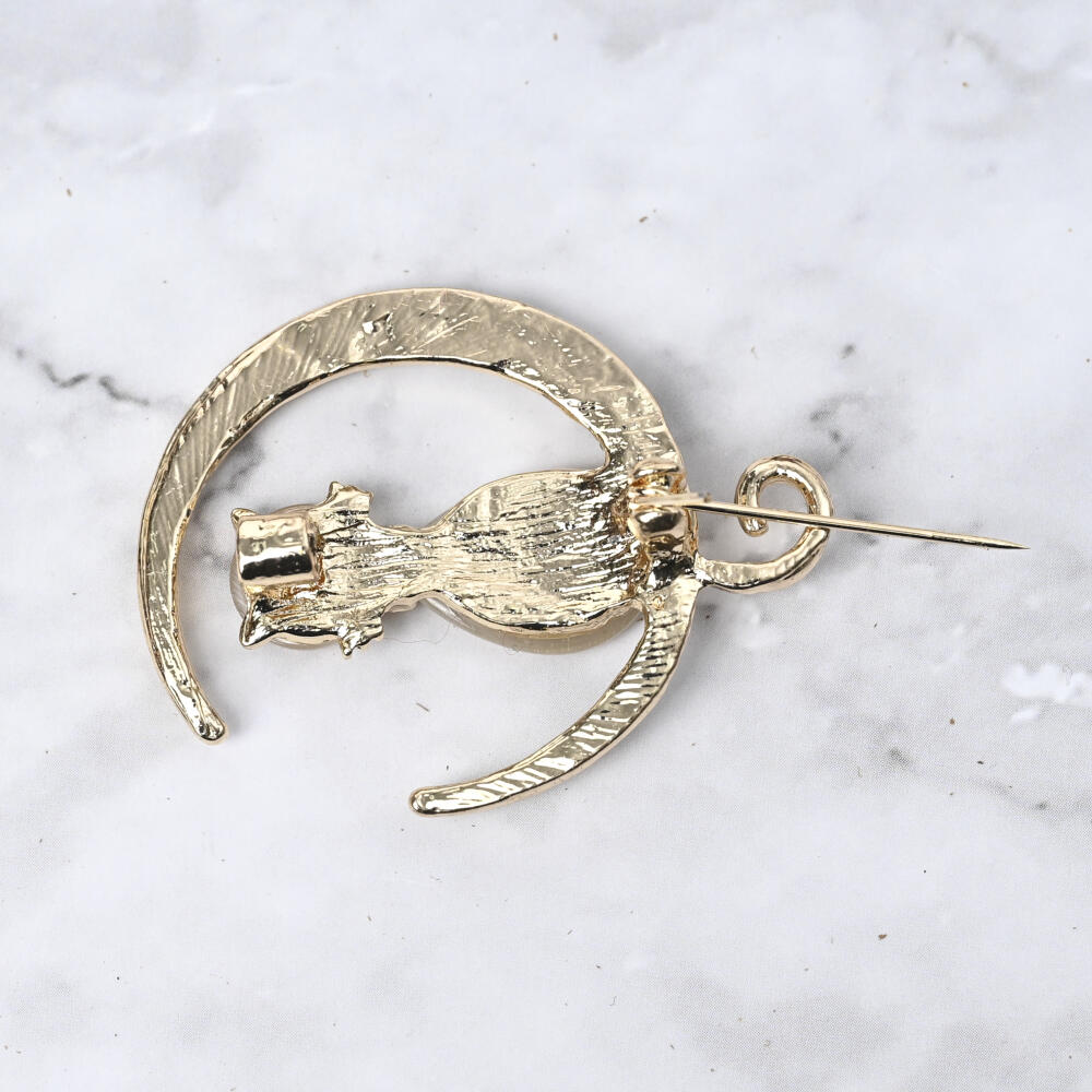 ブローチ レディース 猫 ネコ ねこ キラキラ ラインストーン ゴールド 月 三日月 プレゼント B