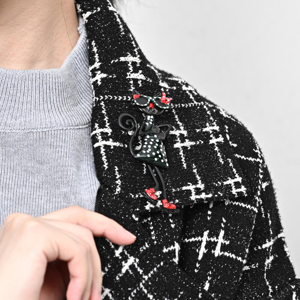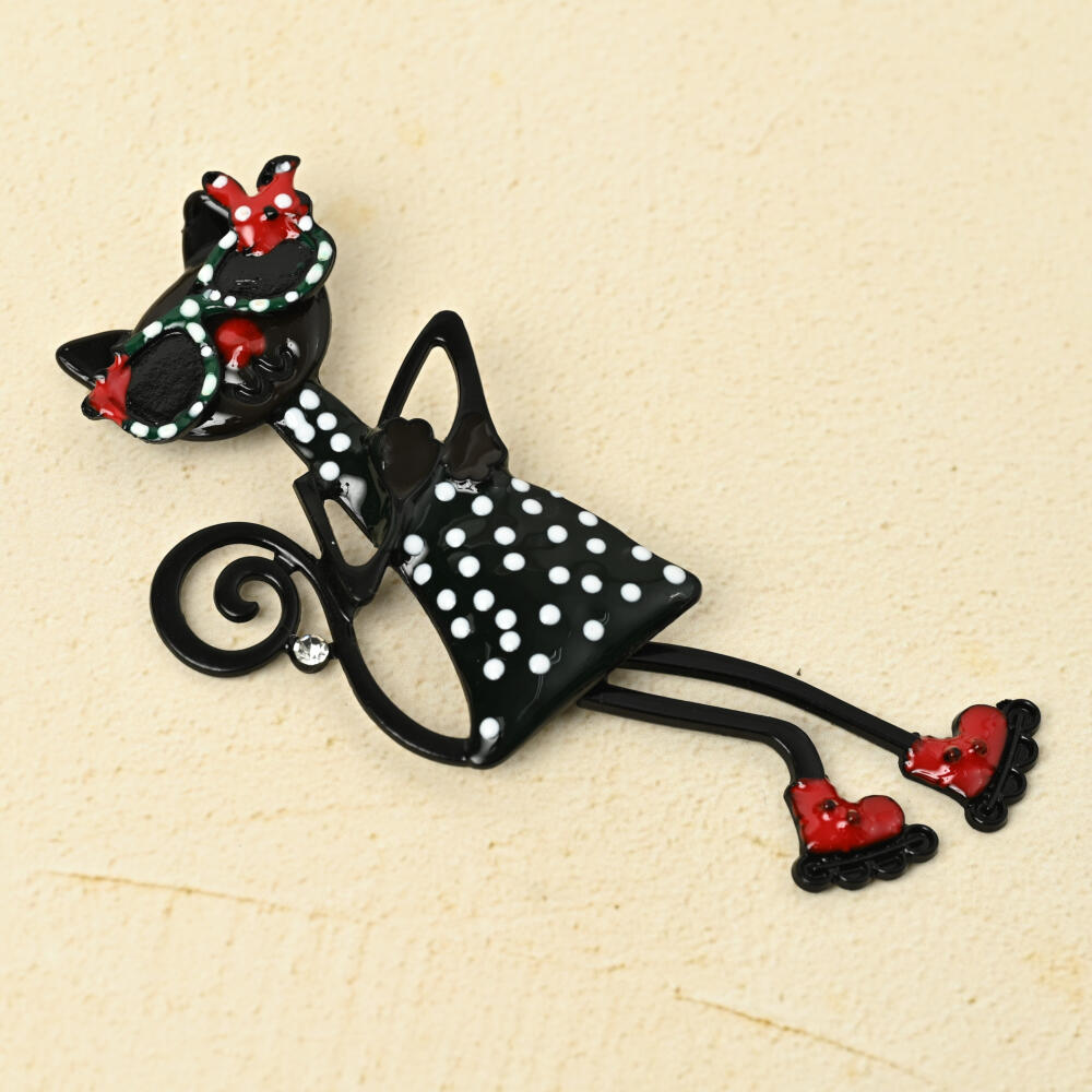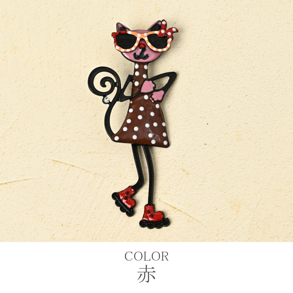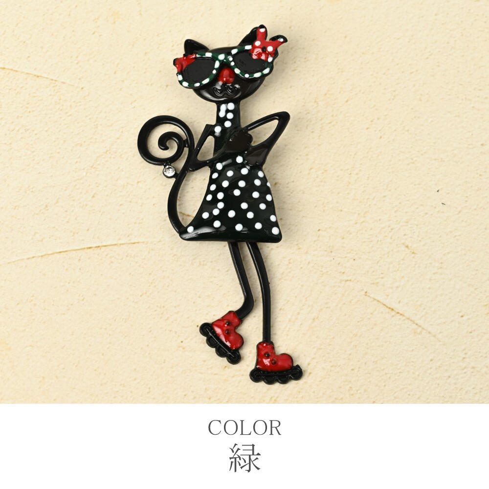 ブローチ レディース 猫 ネコ ねこ サングラス スケート 水玉 ドット柄 緑 赤 お洒落 BR
