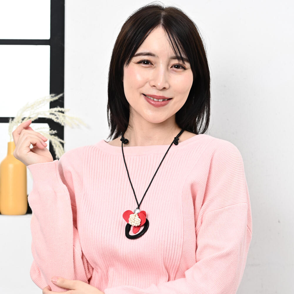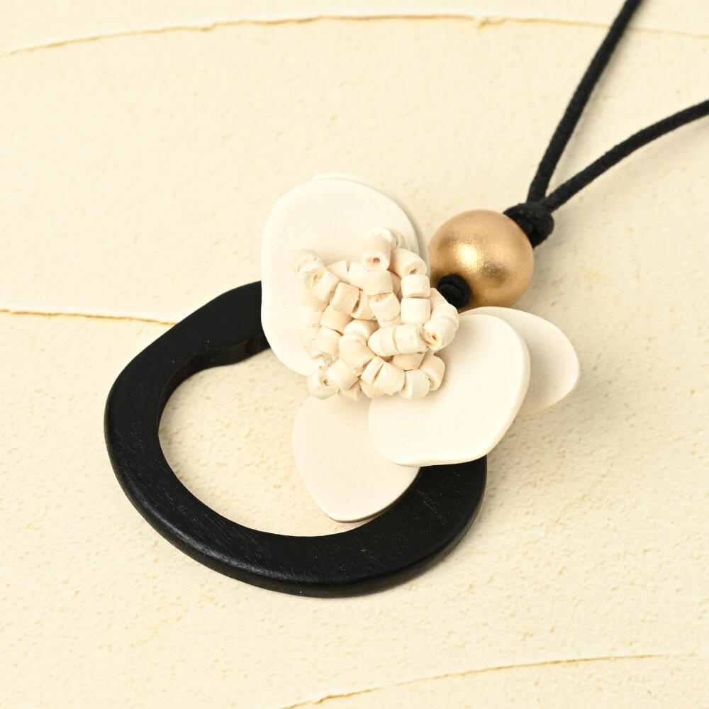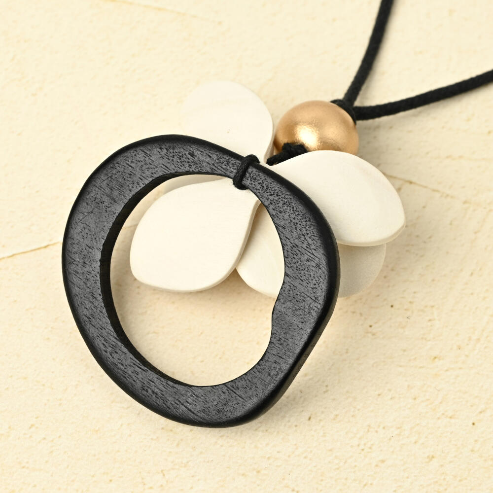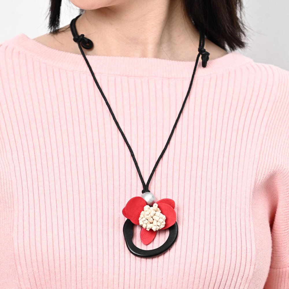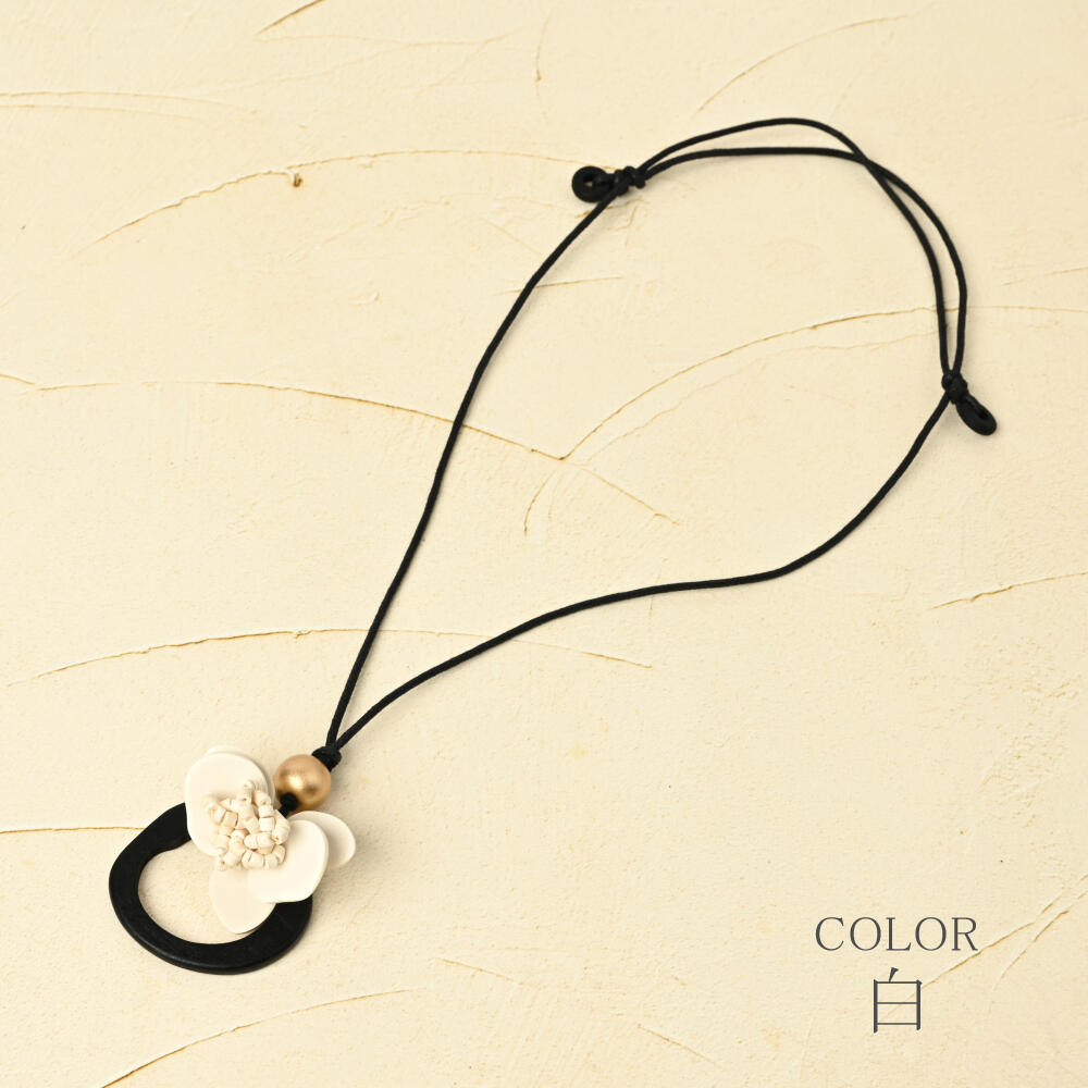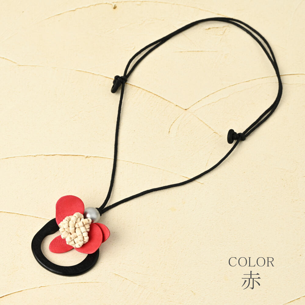 ネックレス ペンダント レディース 花 フラワー ウッド 赤 黒 白 オシャレ 天然素材 カジュアル N