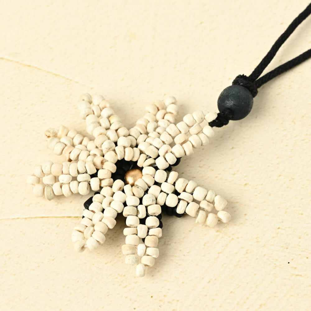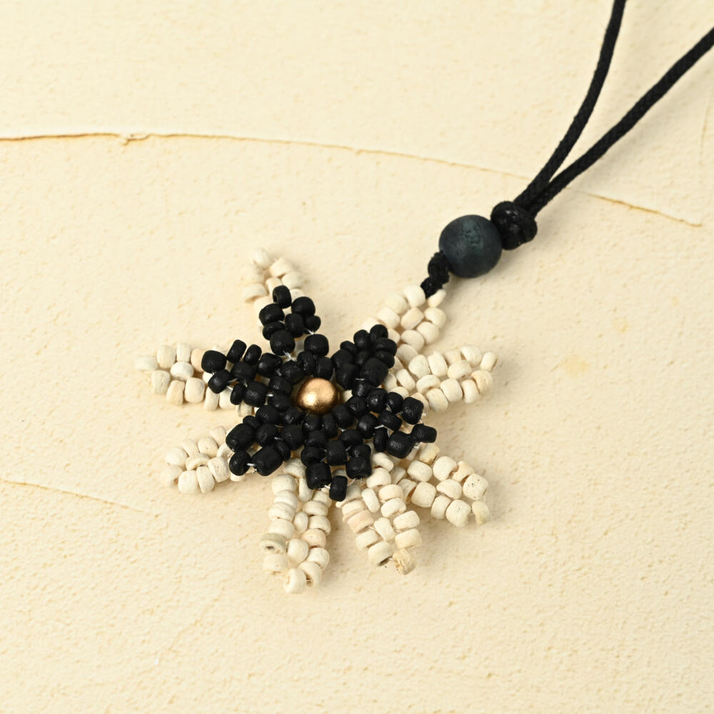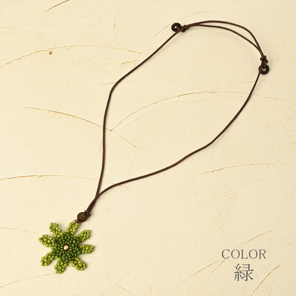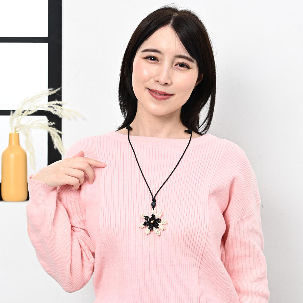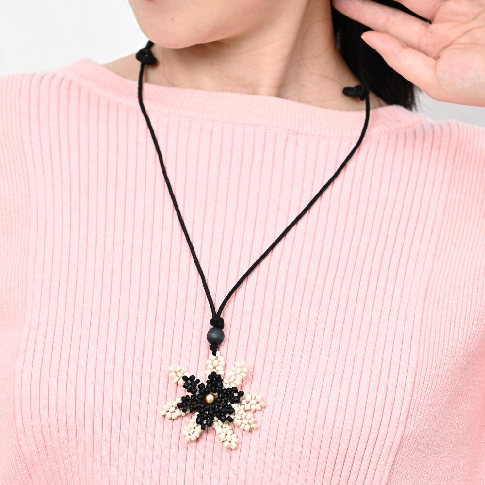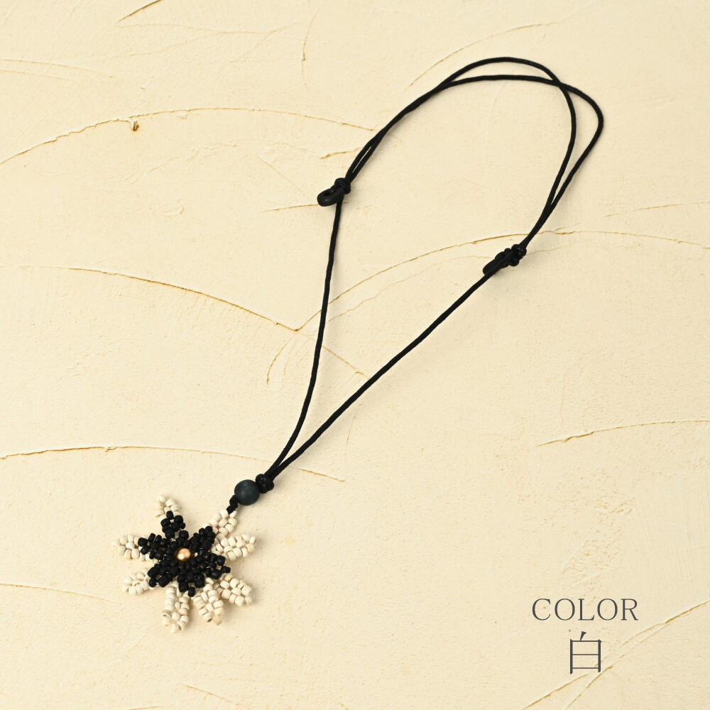 ネックレス ペンダント レディース ウッド 花 フラワー 白 黒 緑 バイカラー 天然素材 カジュアル N
