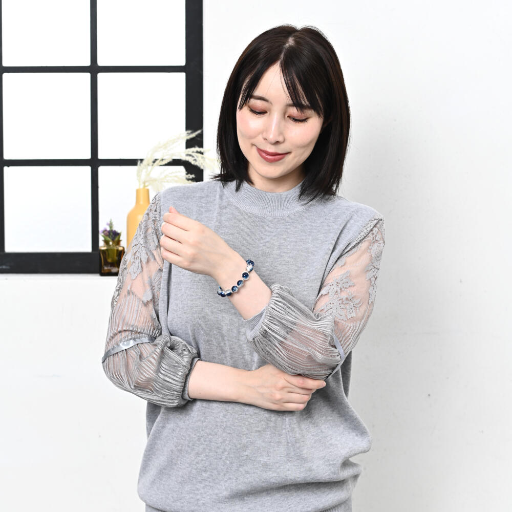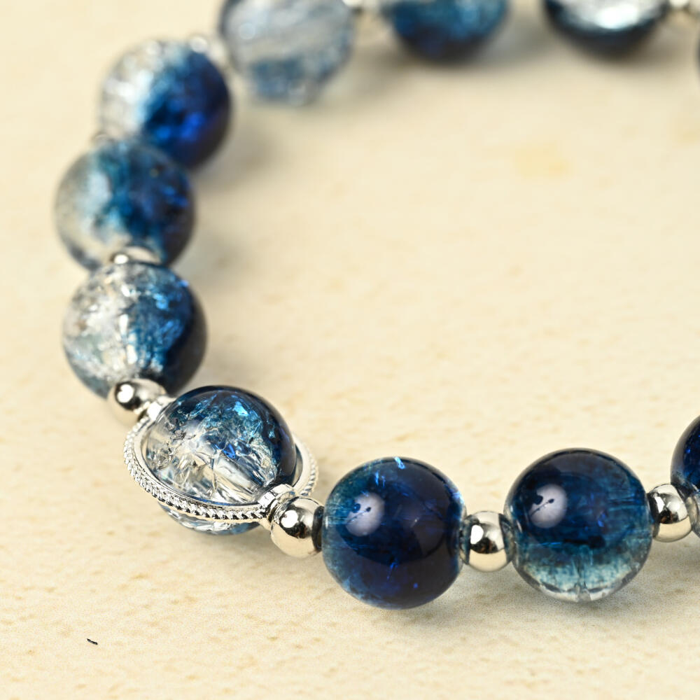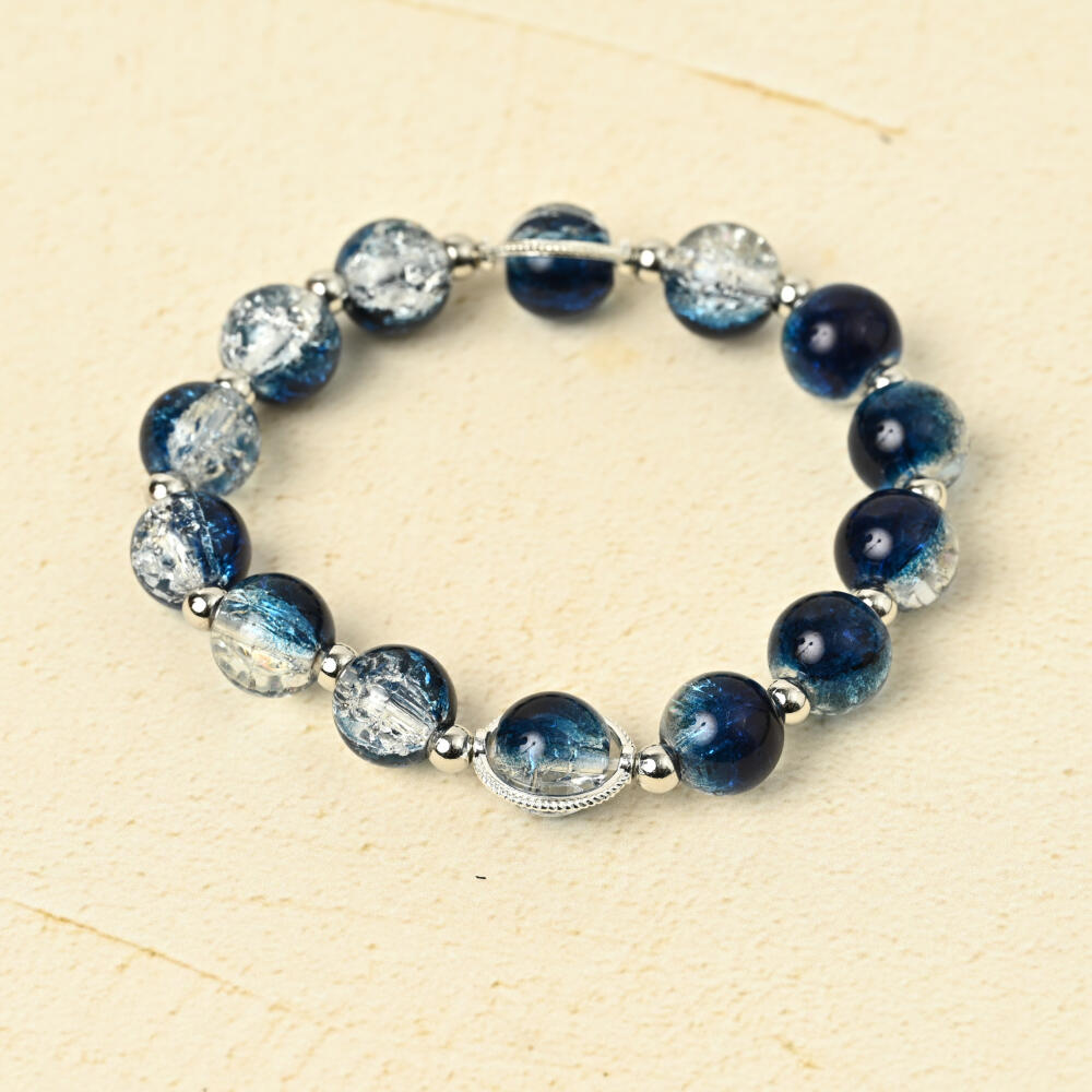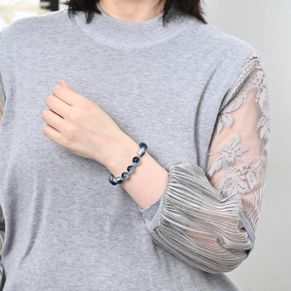 ブレスレット レディース ガラス キラキラ 青 ネイビー 可愛い お洒落 フリーサイズ プレゼント BL