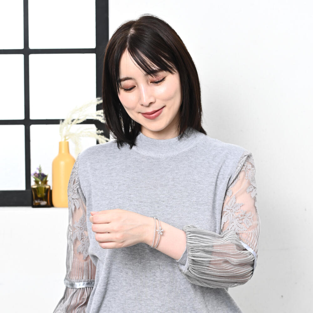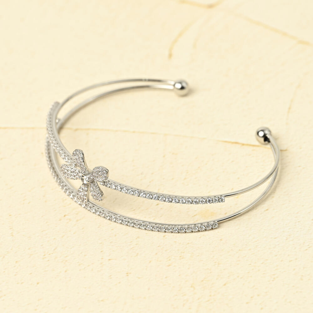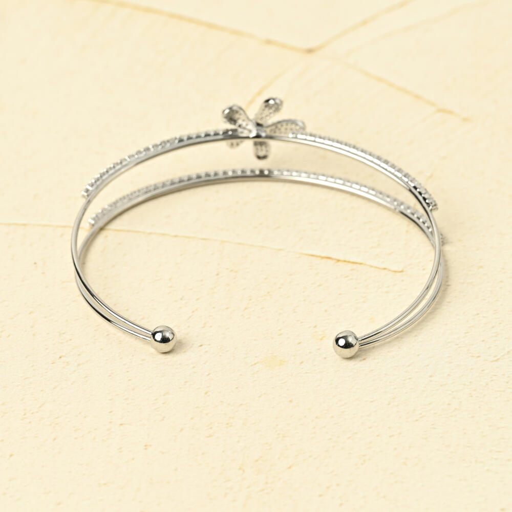 ブレスレット バングル レディース キュービックジルコニア 花 フラワー フリーサイズ BL