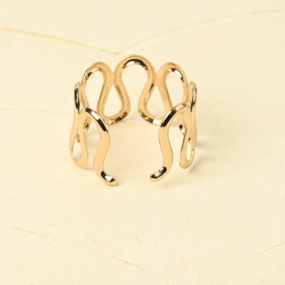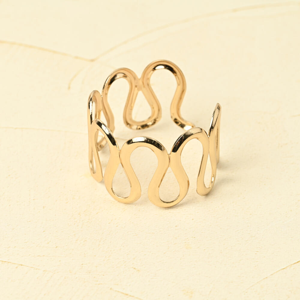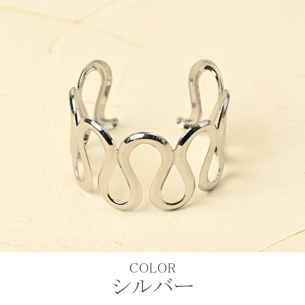 ブレスレット バングル レディース ウェーブ メタル ゴールド シルバー 幅広 大ぶり フリーサイズ BL