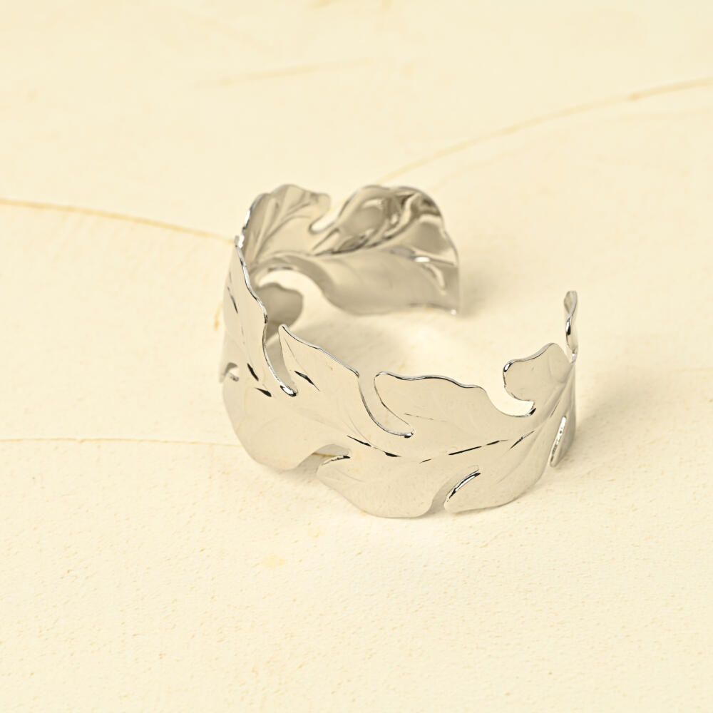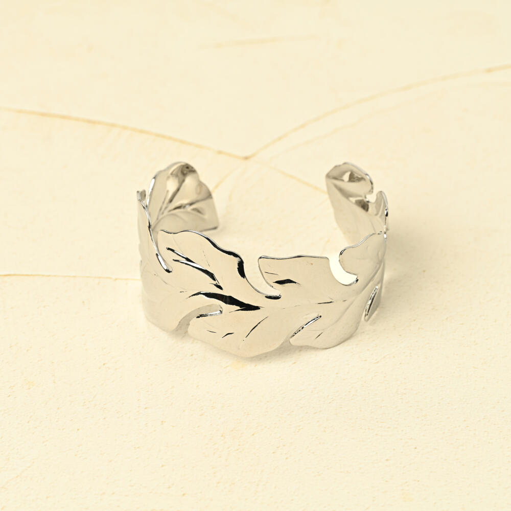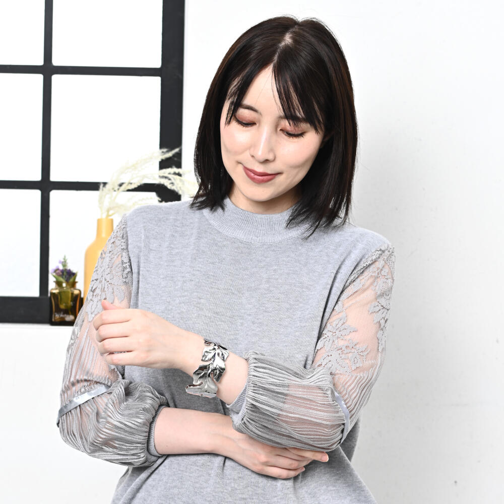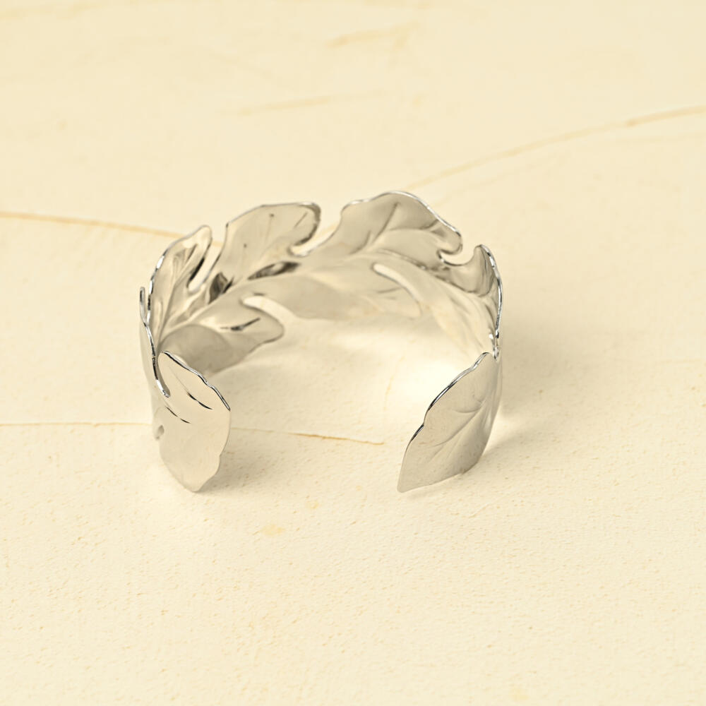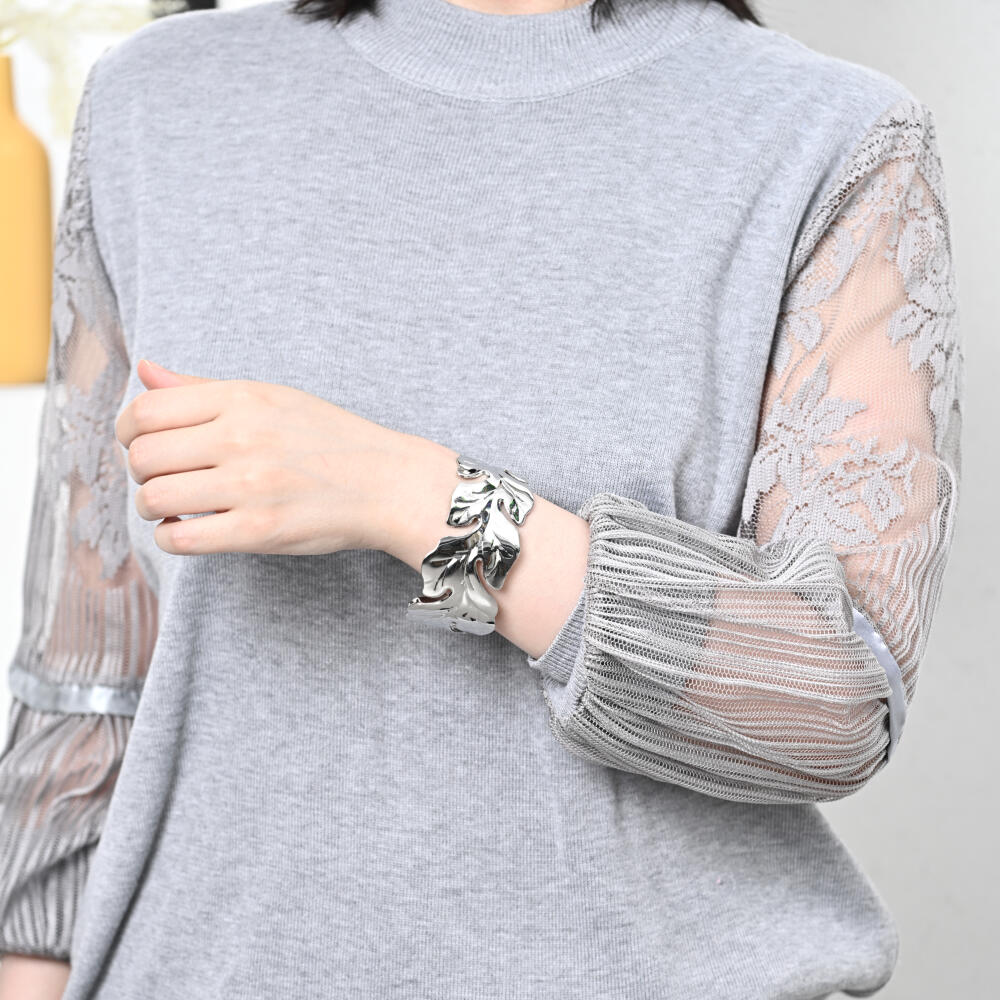 ブレスレット バングル レディース メタル シルバー お洒落 カジュアル リーフ フリーサイズ BL
