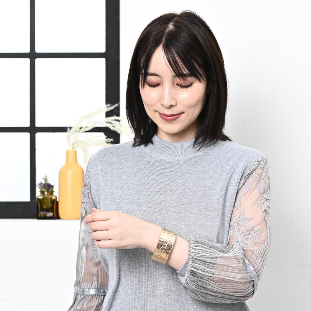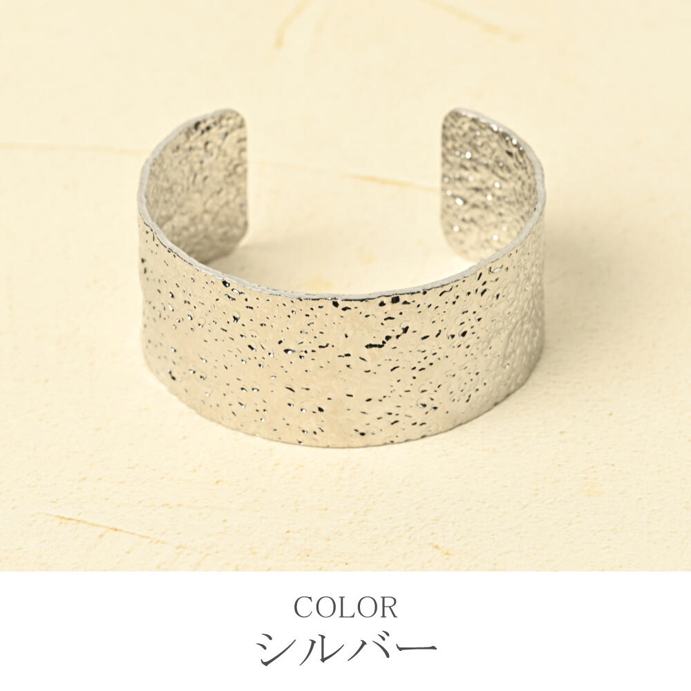 ブレスレット バングル レディース 表面加工 メタル ゴールド シルバー 幅広 フリーサイズ BL