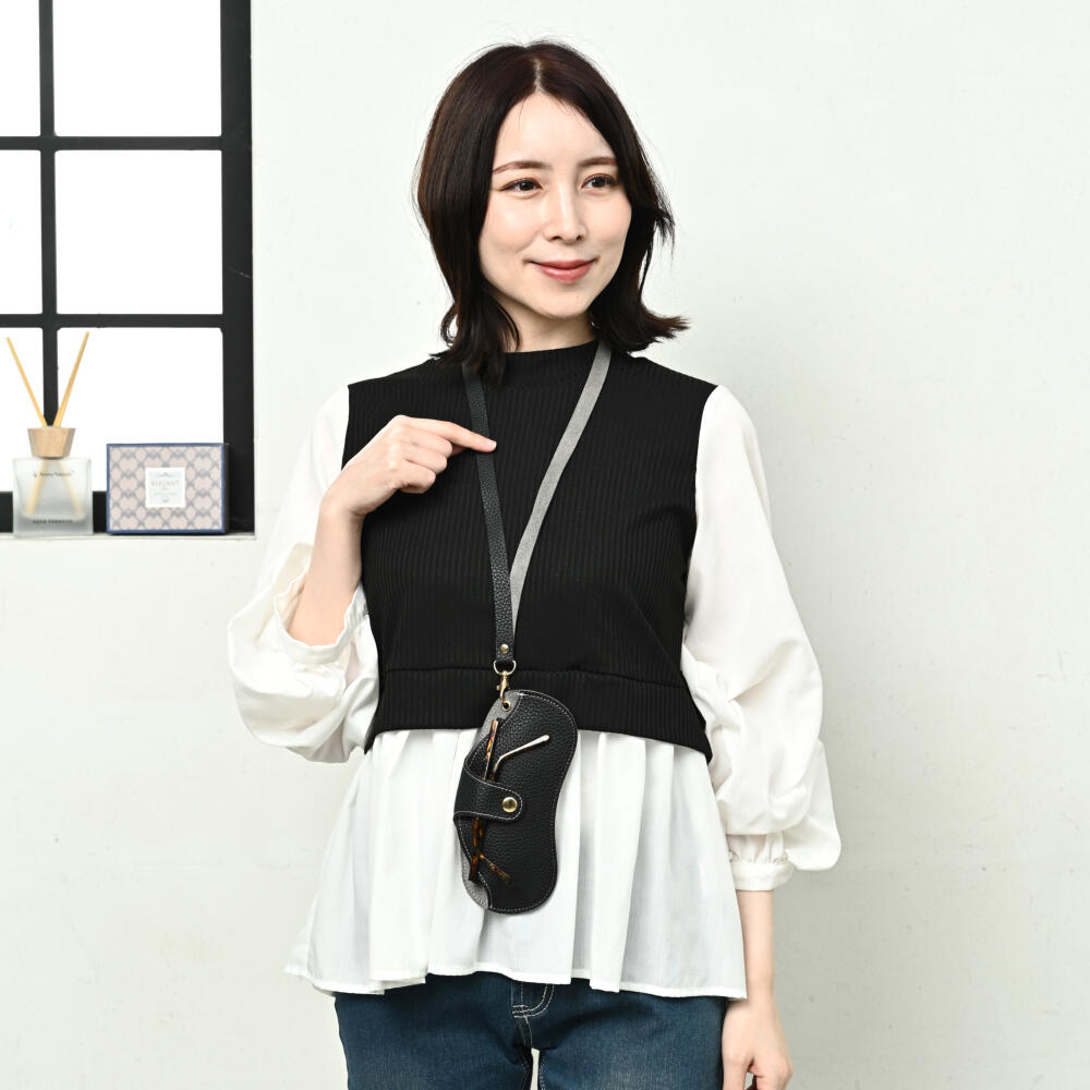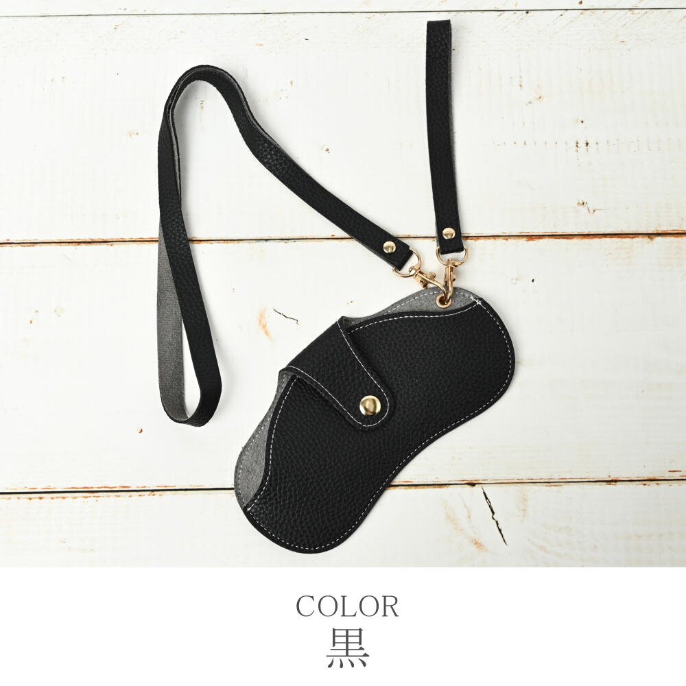 眼鏡ケース 眼鏡ポーチ サングラス 首掛け ネックストラップ 2way 黒 グレー ピンク Z