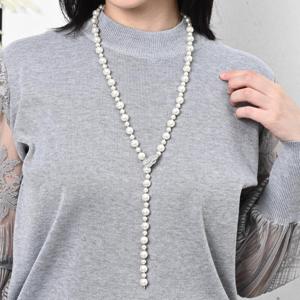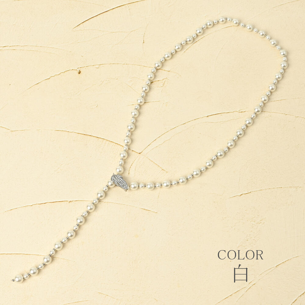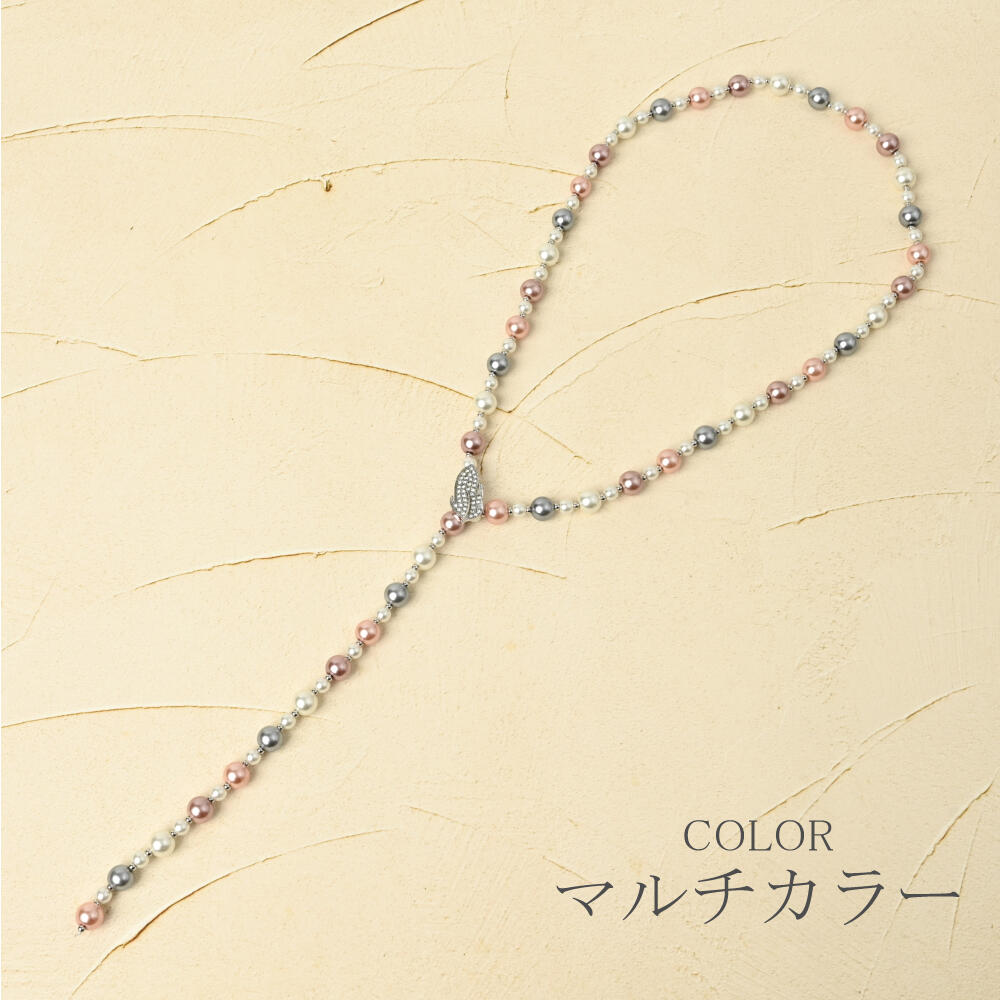 ネックレス レディース Y字ネックレス パール 白 マルチカラー 上品 キラキラ N