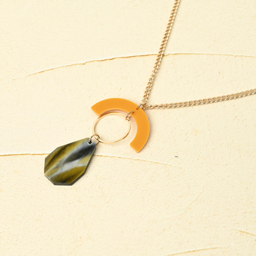 ネックレス ペンダント レディース イエロー マーブル 秋カラー オシャレ カジュアル プレゼント N