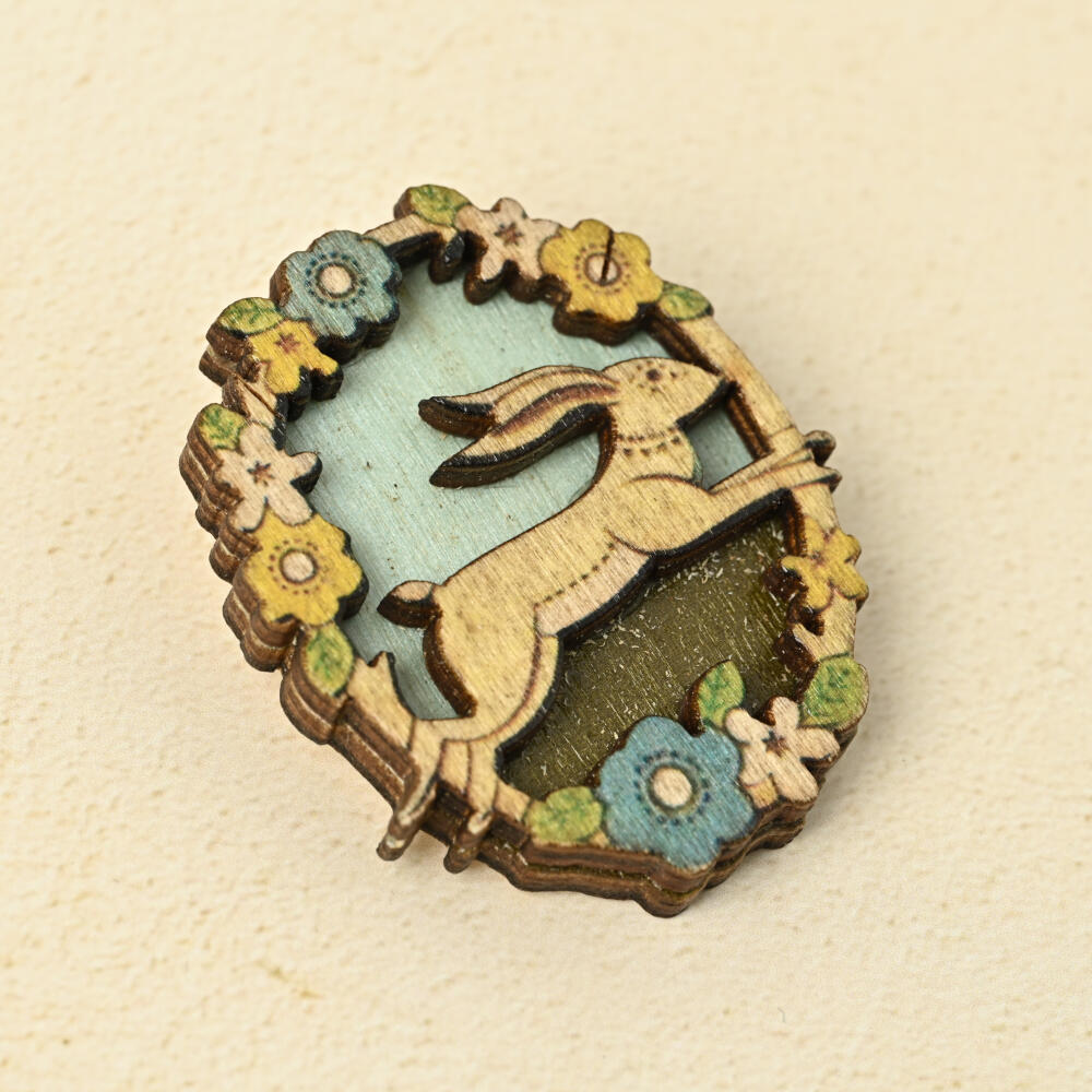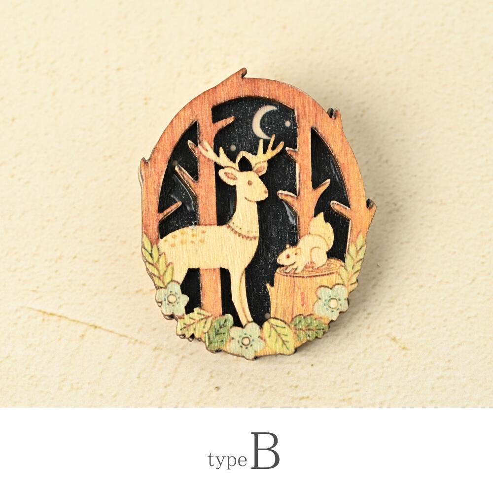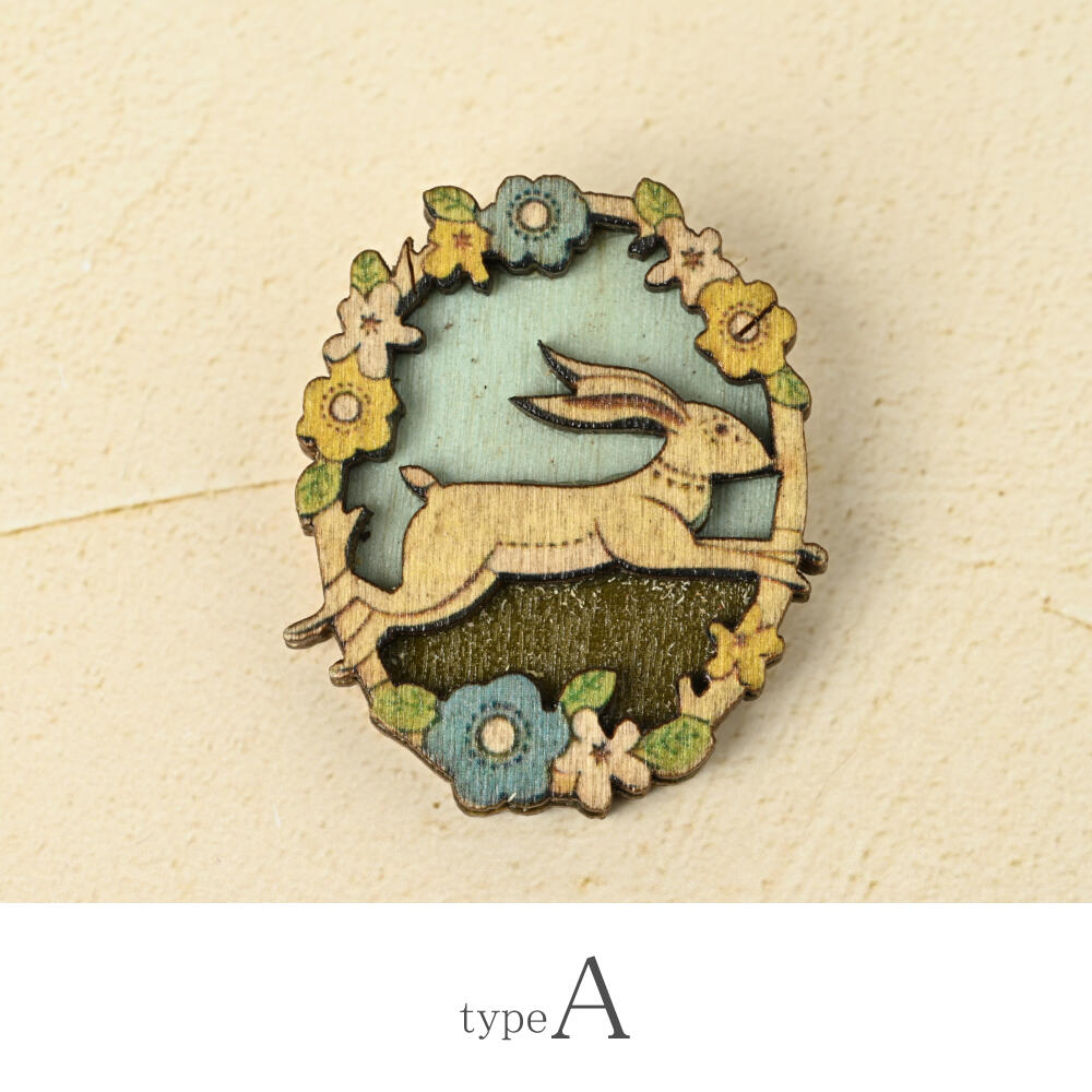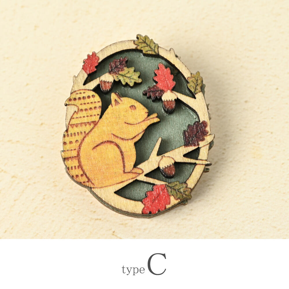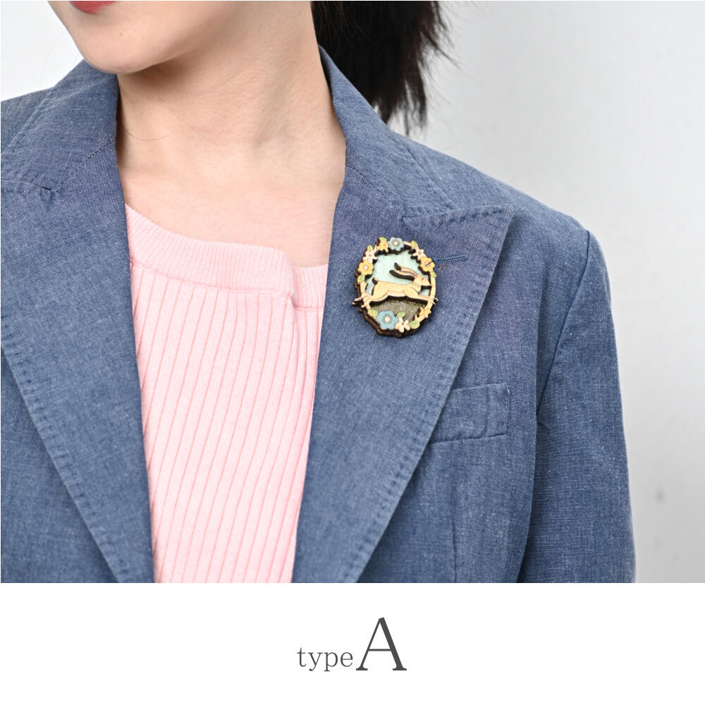 ブローチ レディース ウッド うさぎ ウサギ シカ 鹿 リス りす 収穫祭 可愛い プレゼント BR