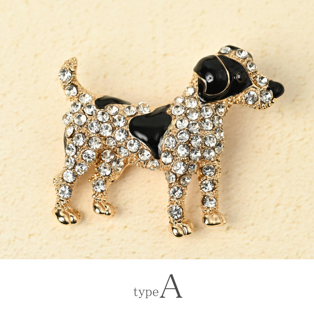 ブローチ レディース 犬 イヌ いぬ ぶち柄 可愛い キラキラ ラインストーン プレゼント BR