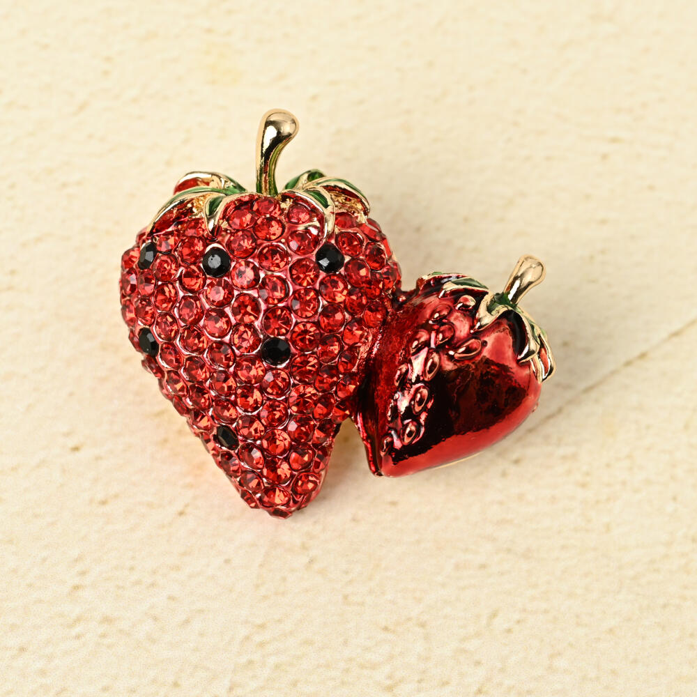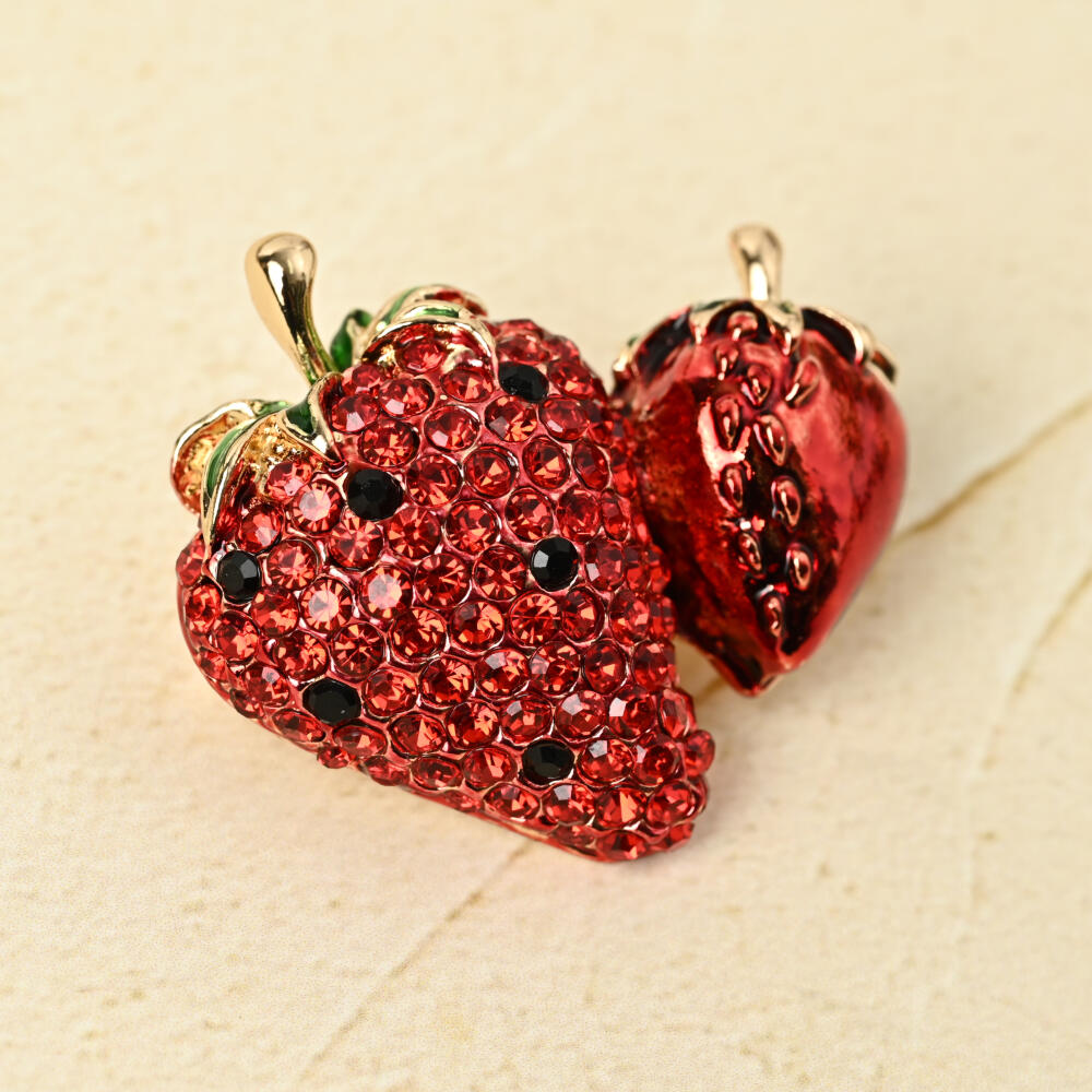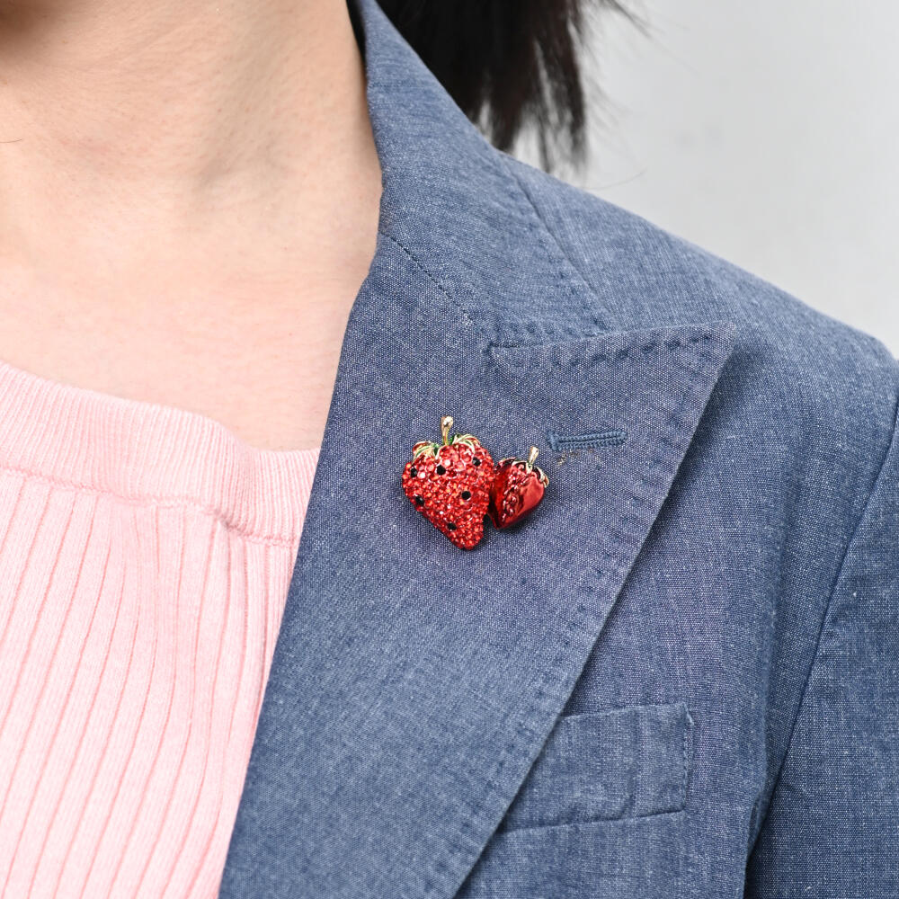 ブローチ レディース 苺 イチゴ いちご ストロベリー 収穫祭 キラキラ ラインストーン BR