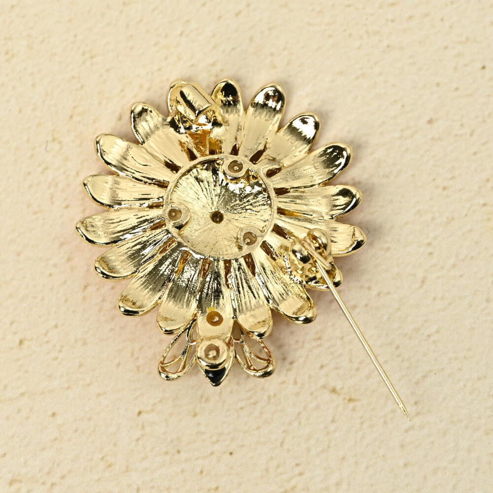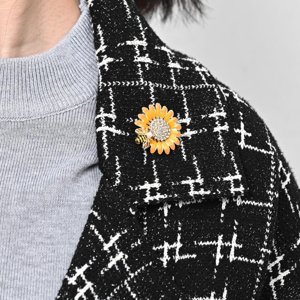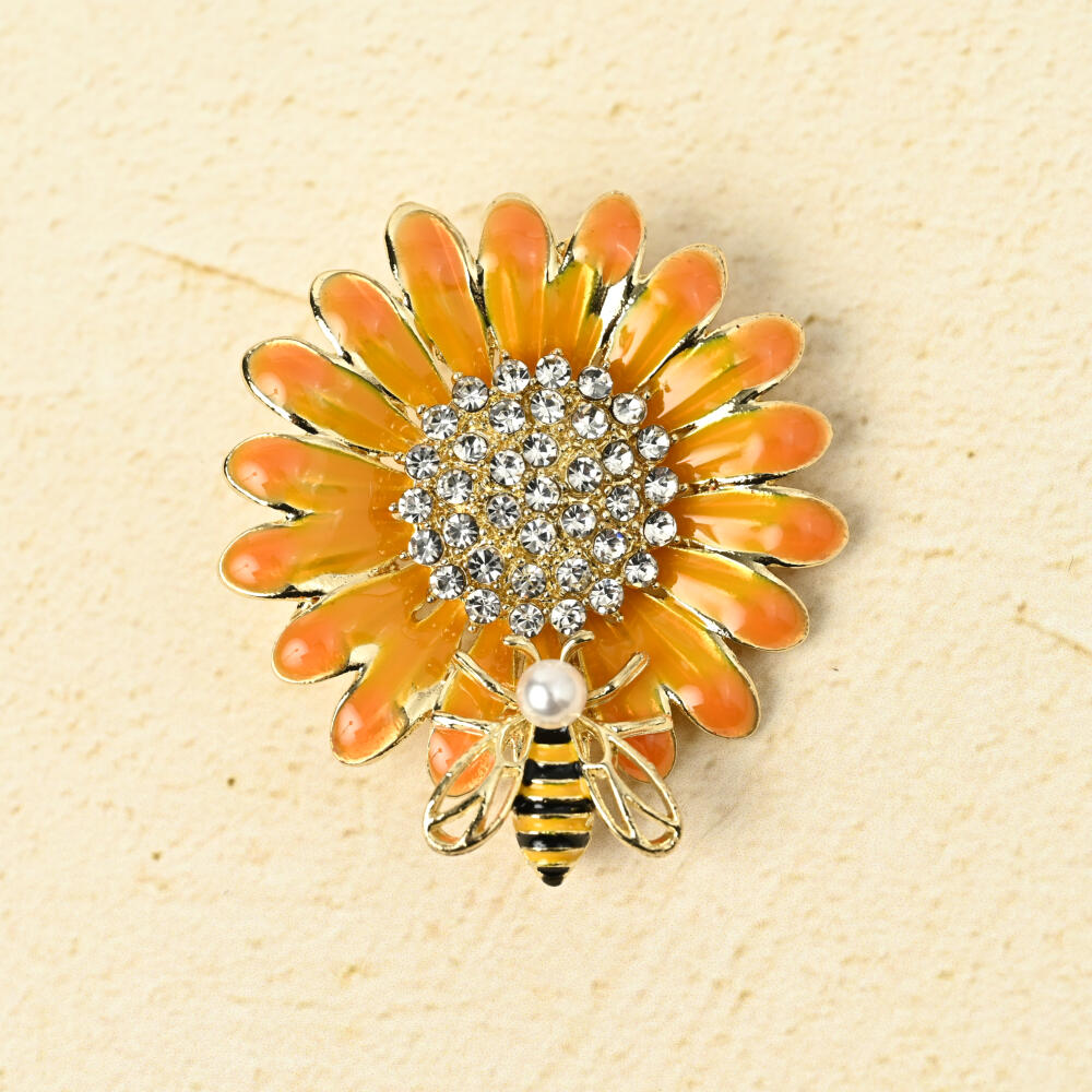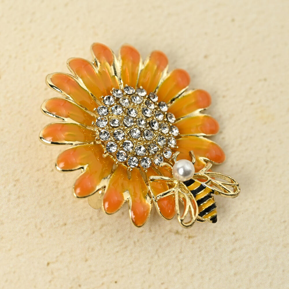 ブローチ レディース 向日葵 ヒマワリ ひまわり 蜂 キラキラ ラインストーン 黄色 花 BR