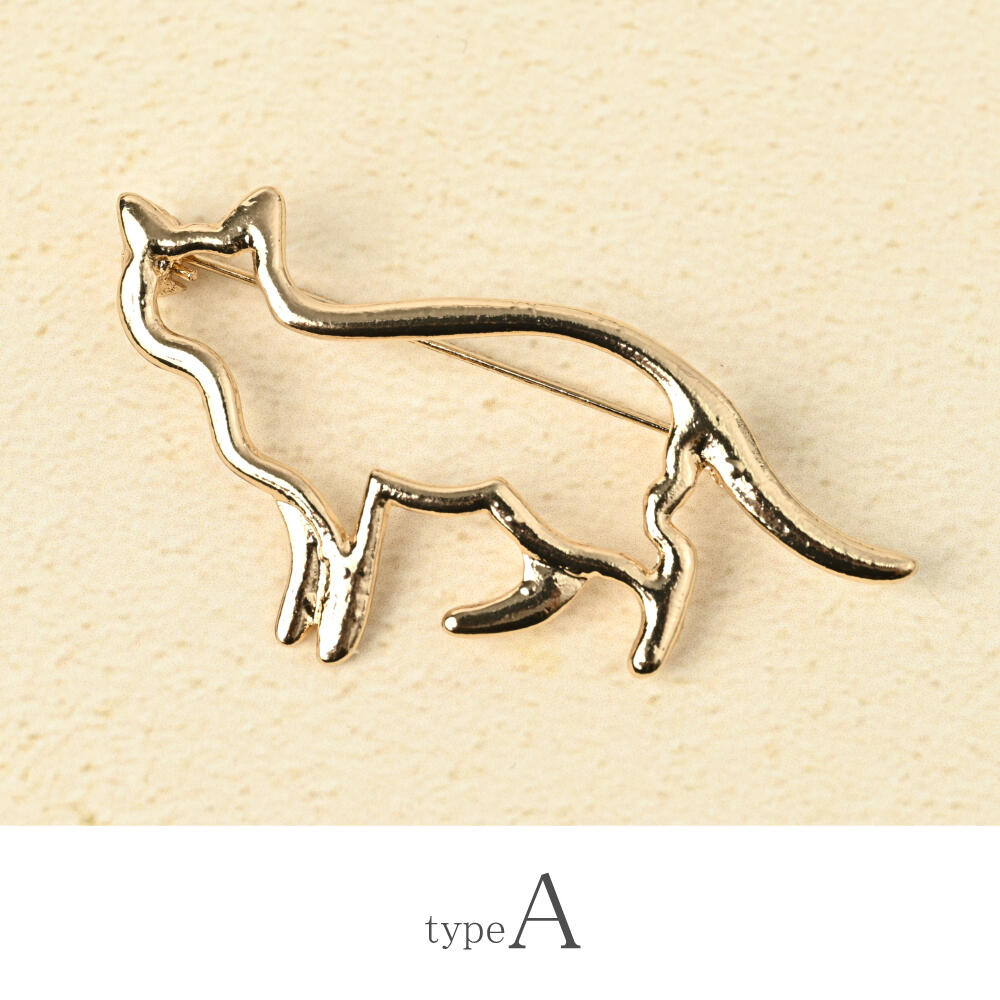 ブローチ レディース 猫 ネコ ねこ シルエット ゴールド 可愛い プレゼント BR