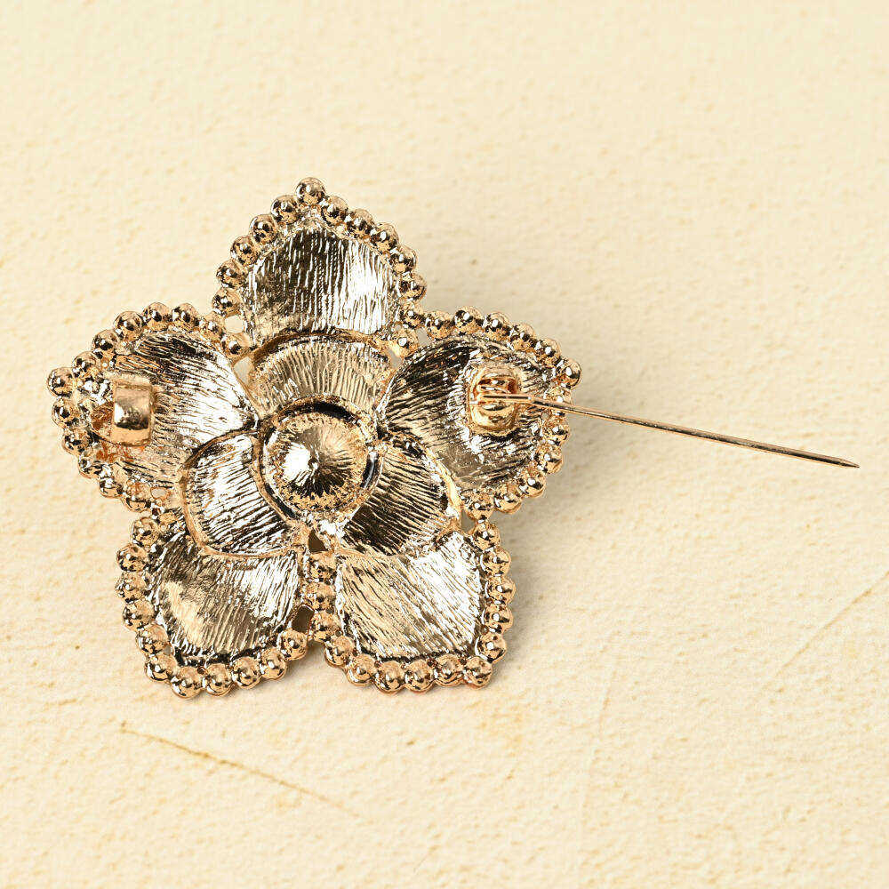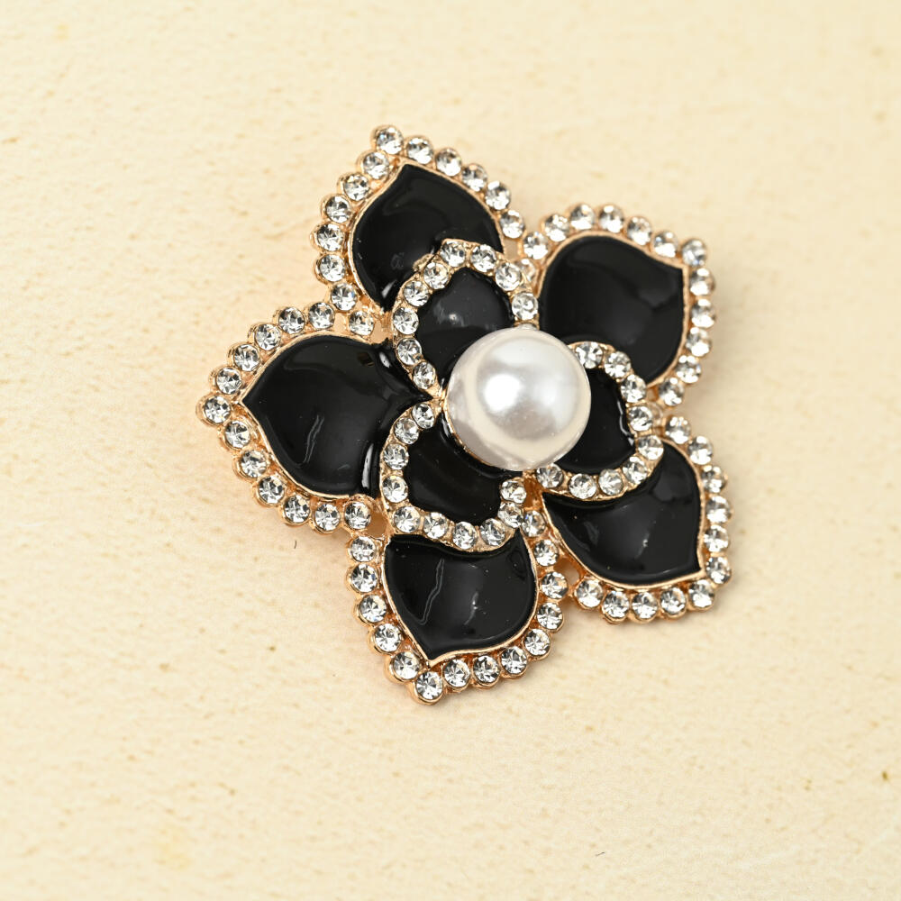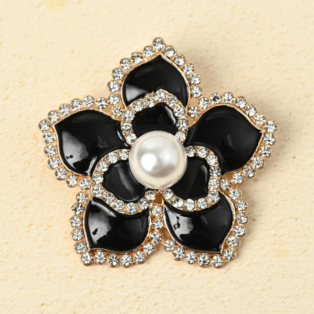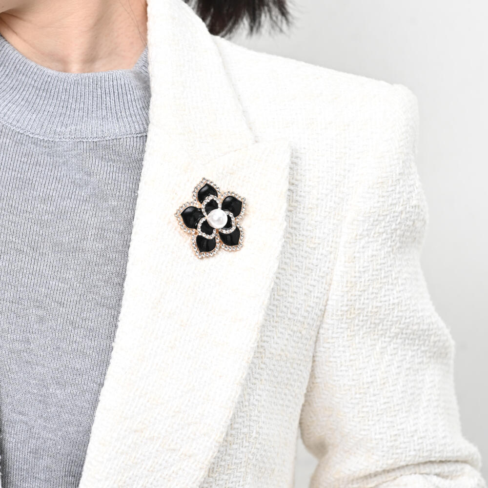 ブローチ レディース 花 フラワー 黒 パール キラキラ ラインストーン 大きめ BR
