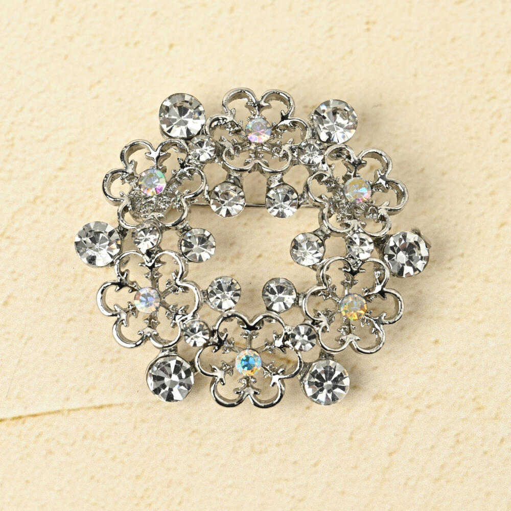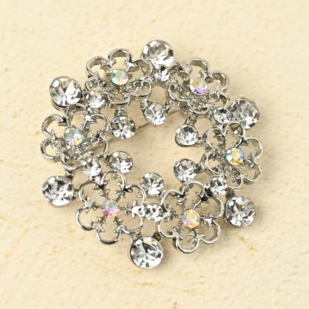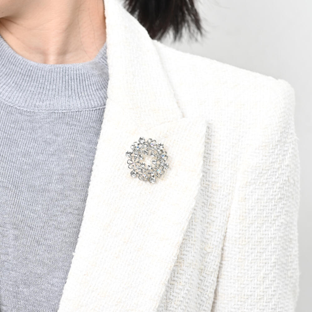 ブローチ レディース 花 フラワー リーフ シルバー キラキラ ラインストーン プレゼント BR