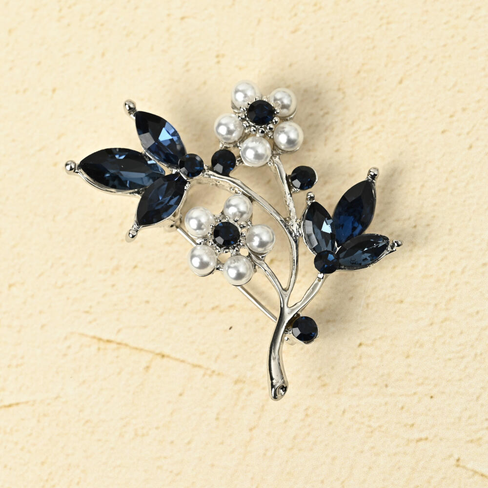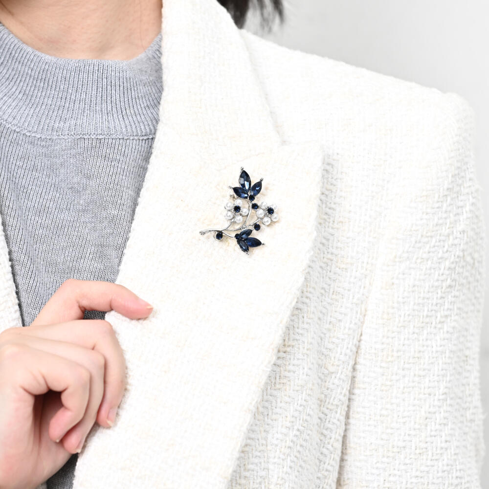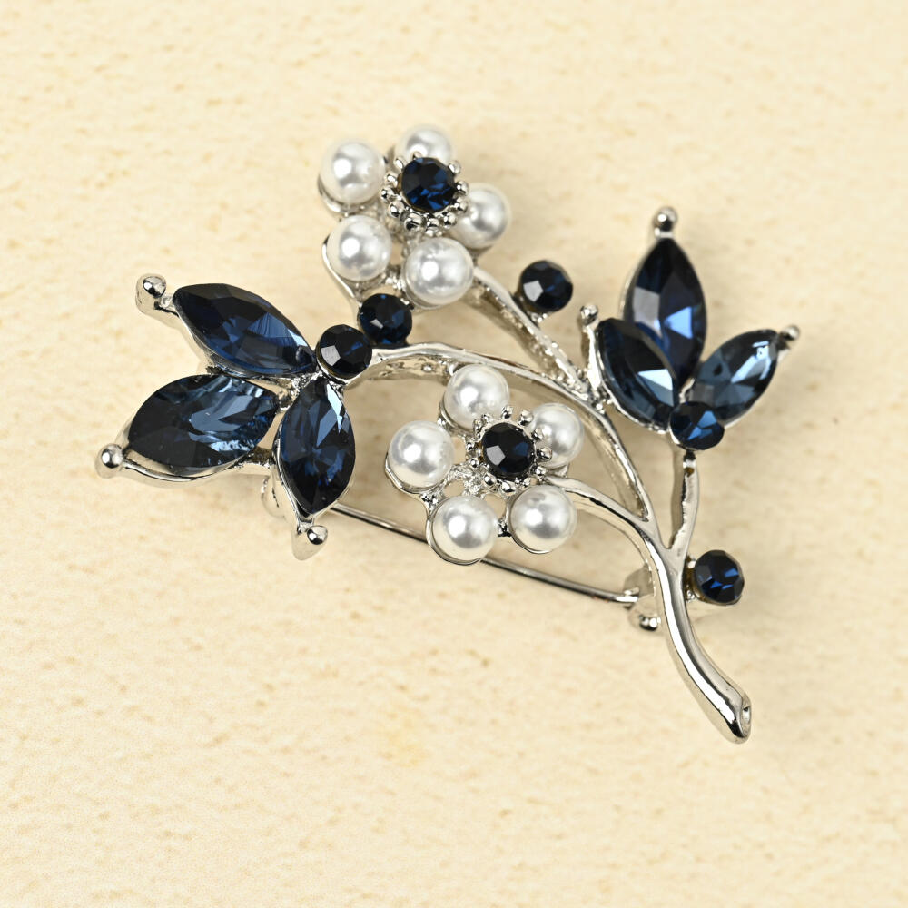 ブローチ レディース 花 フラワー パール 青 ビジュ キラキラ プレゼント BR