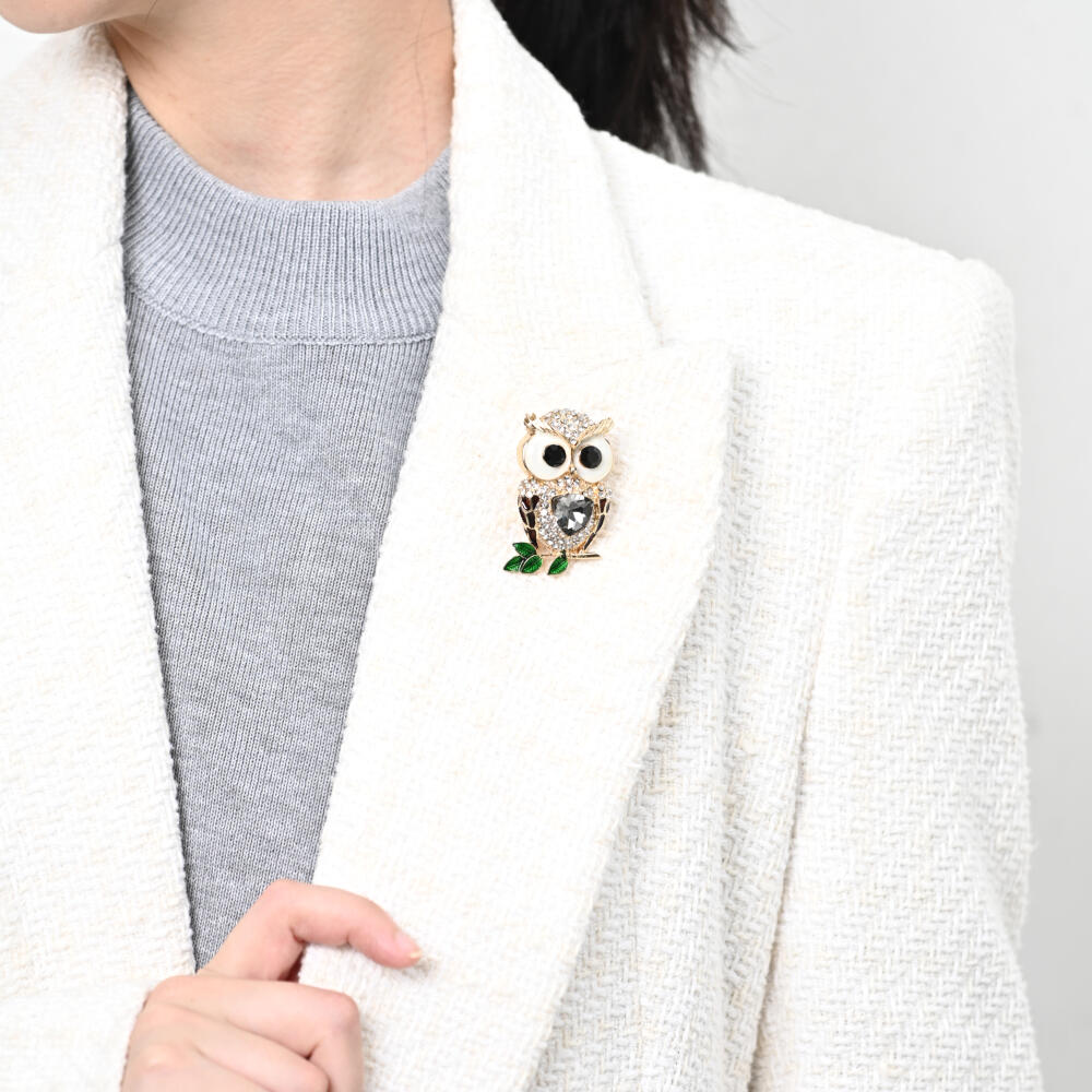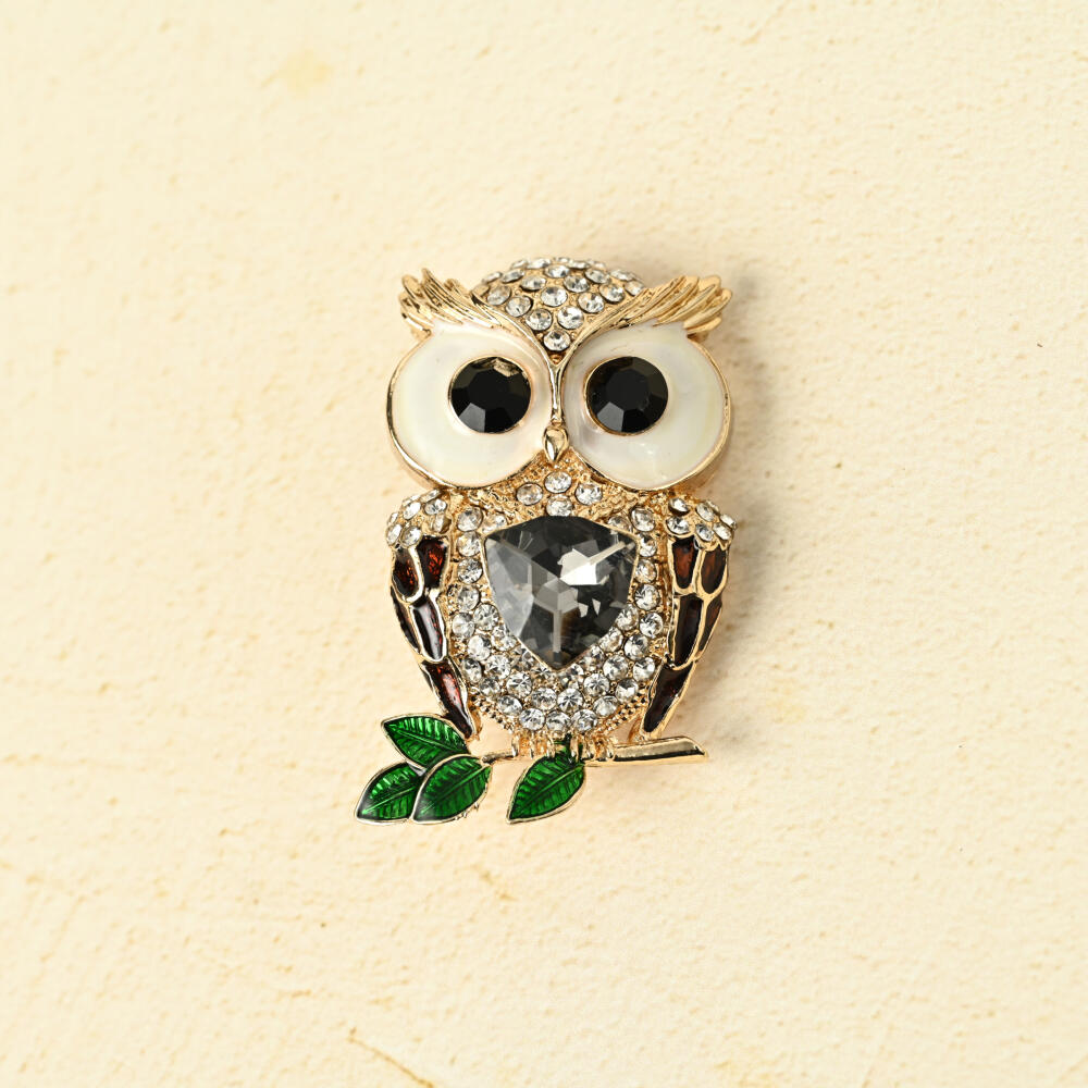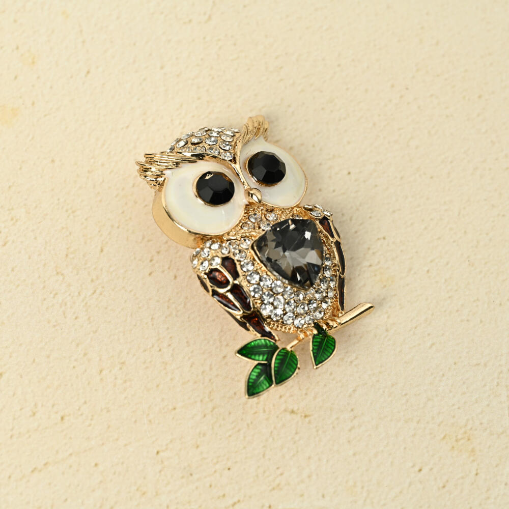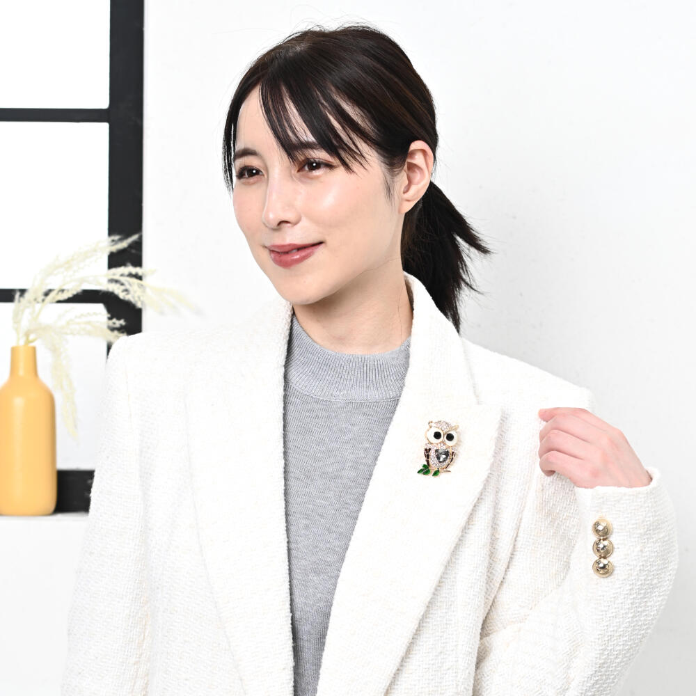 ブローチ レディース ふくろう フクロウ 梟 ミミズク ビジュ キラキラ ラインストーン プレゼント BR