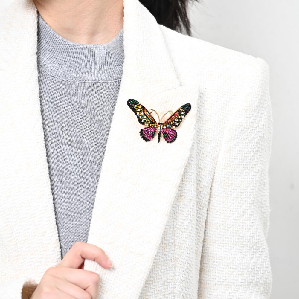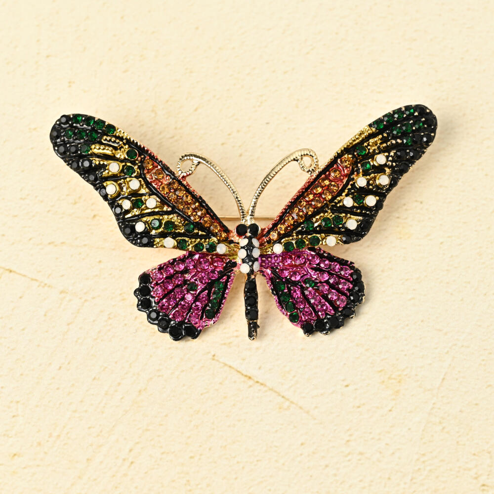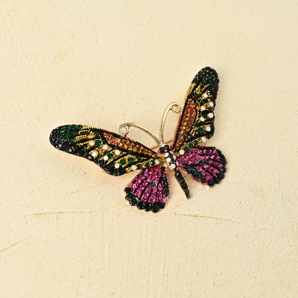 ブローチ レディース 蝶 ちょうちょ カラフル キラキラ ラインストーン 大きめ プレゼント BR