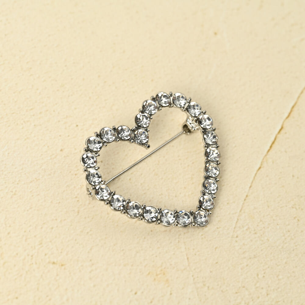 ブローチ レディース ハート キラキラ ラインストーン シンプル シルバー プレゼント BR