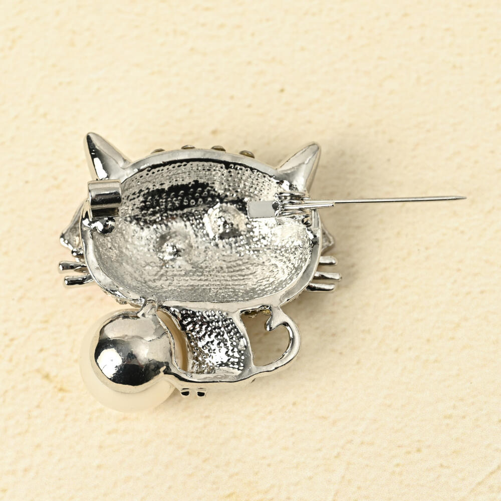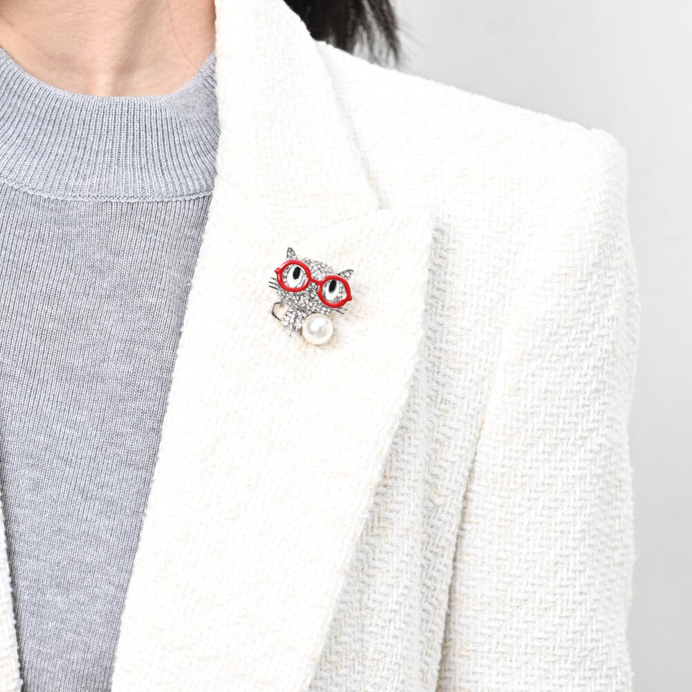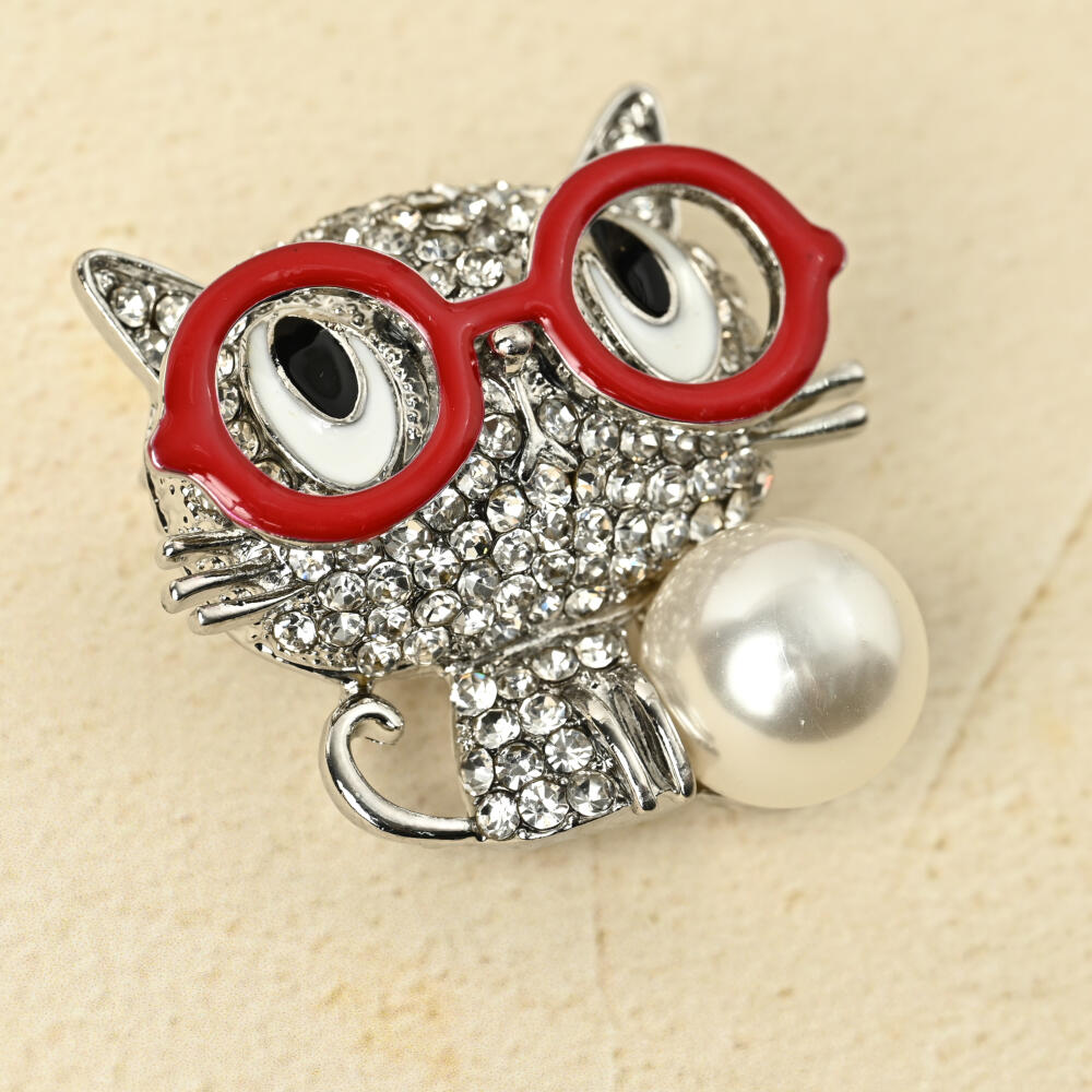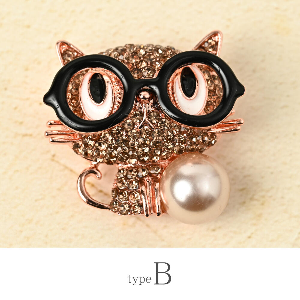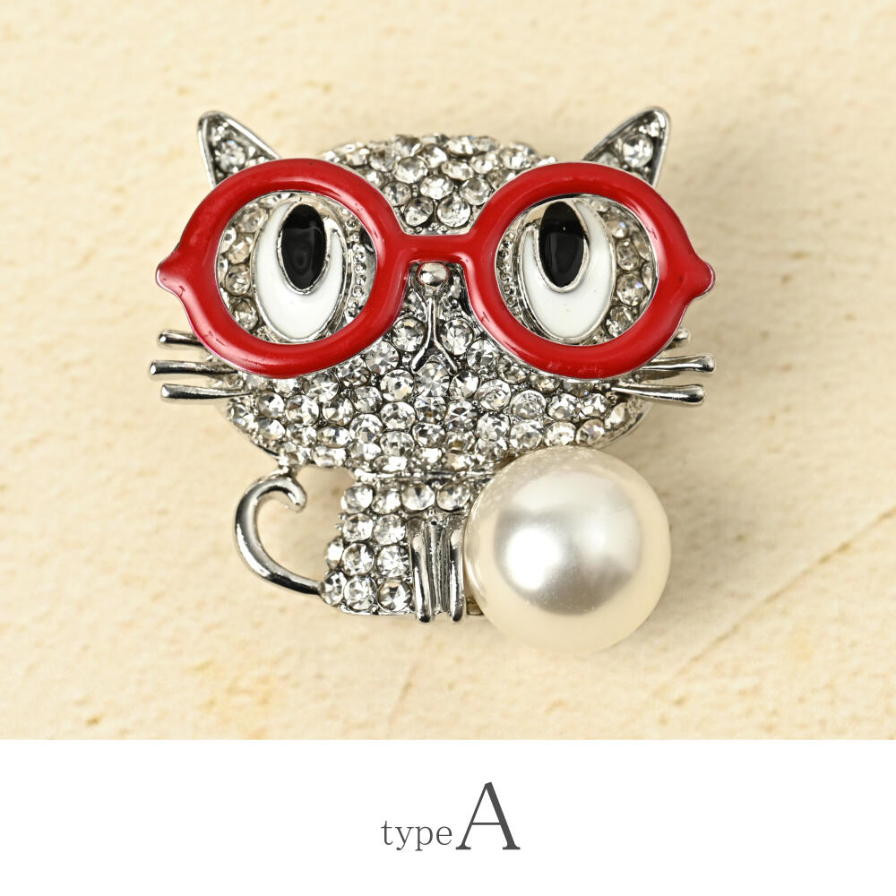 ブローチ レディース 猫 ネコ ねこ 眼鏡 可愛い パール キラキラ ラインストーン BR