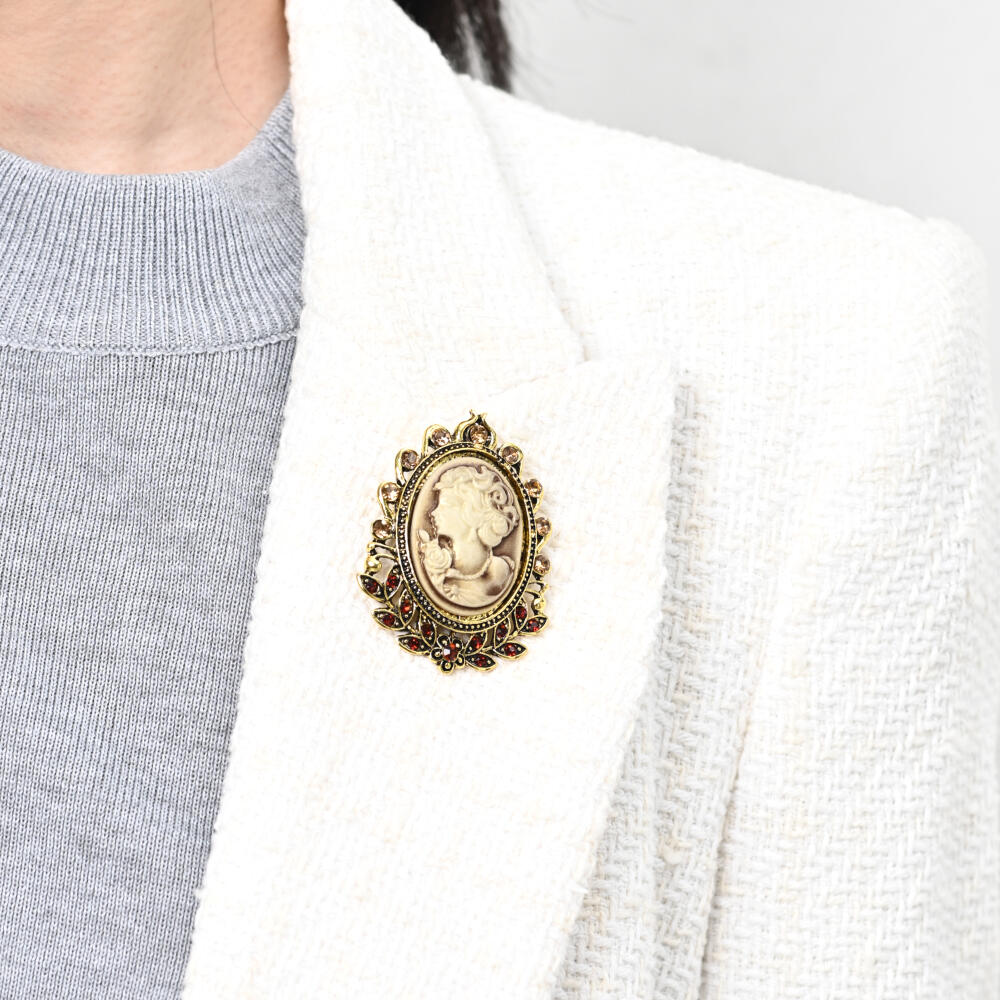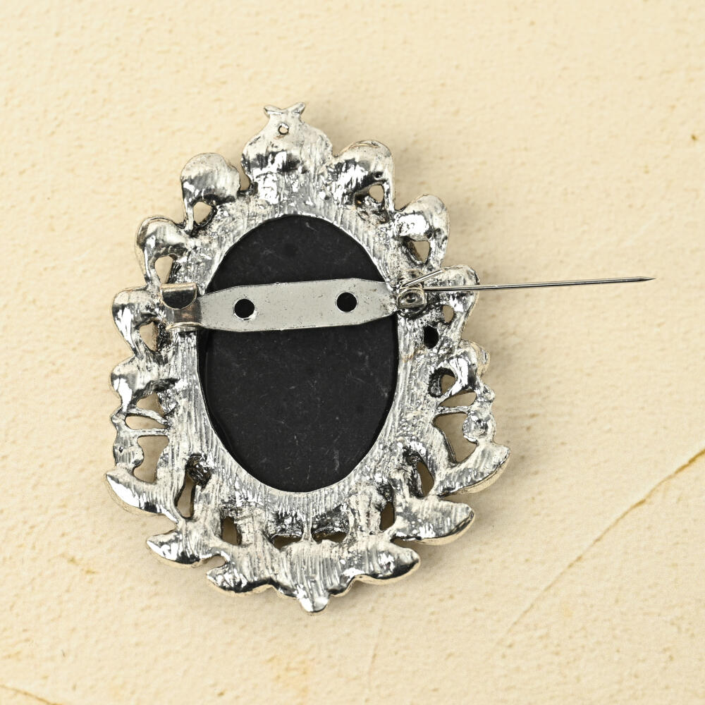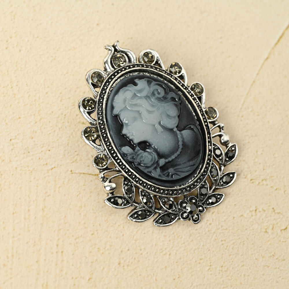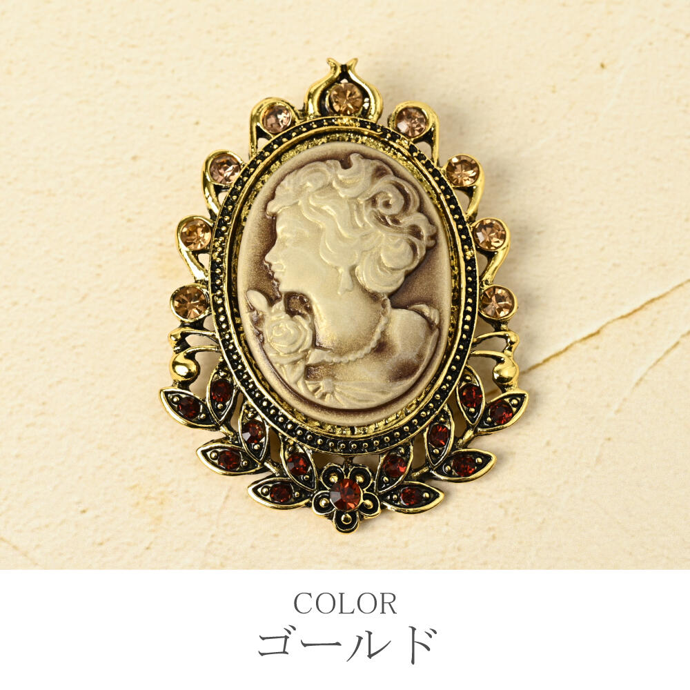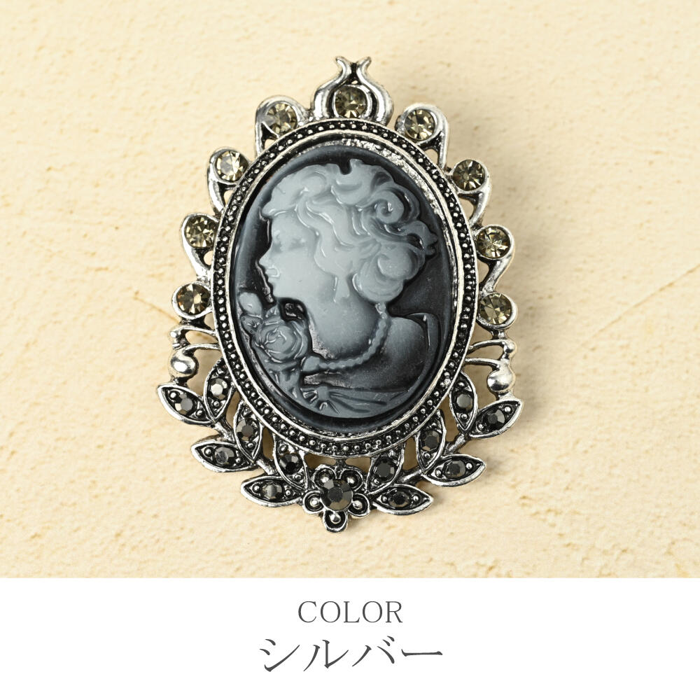 ブローチ レディース カメオ 横顔 樹脂 キラキラ ラインストーン 高見え 大きめ BR
