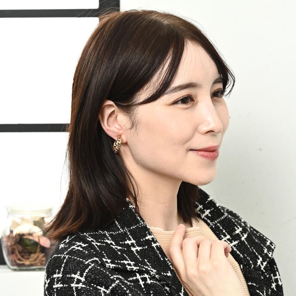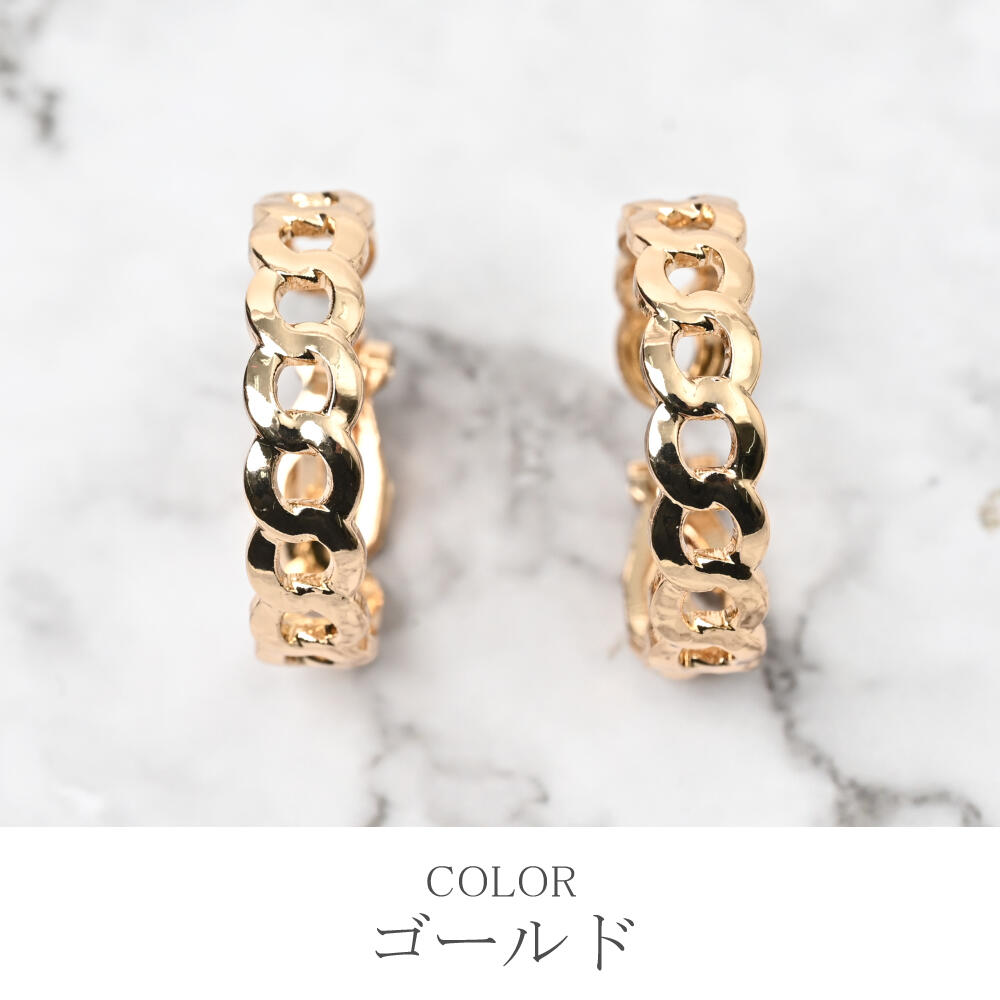 イヤリング レディース フープ チェーン繋ぎ メタル シルバー ゴールド カジュアル E