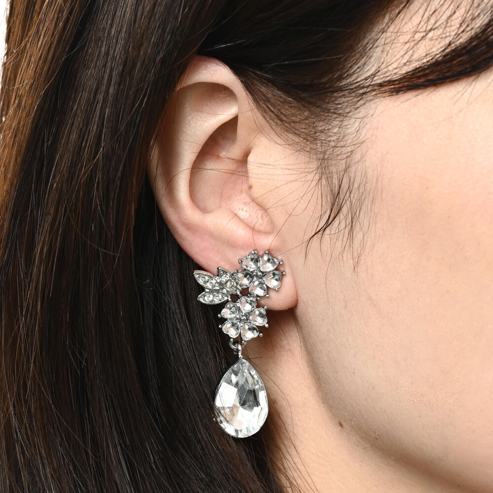イヤリング レディース ビジュ キラキラ 揺れる 花 フラワー 豪華 高見え 結婚式 E