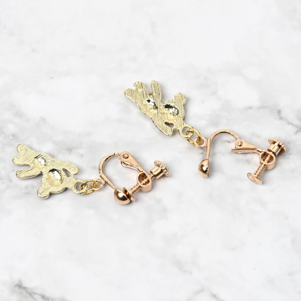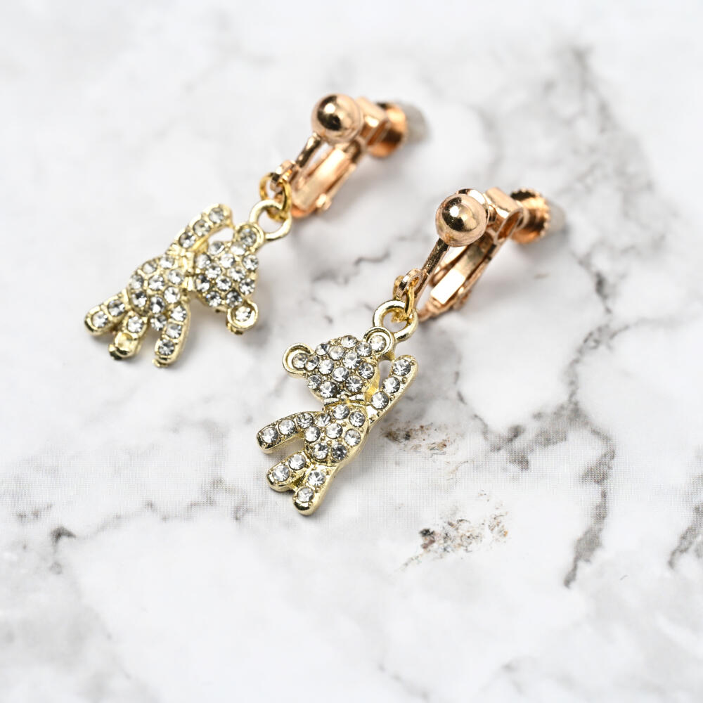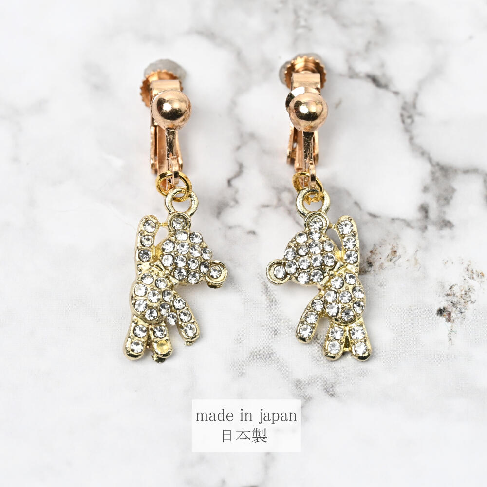 日本製 イヤリング レディース クマ くま 熊 ゴールド ラインストーン キラキラ E