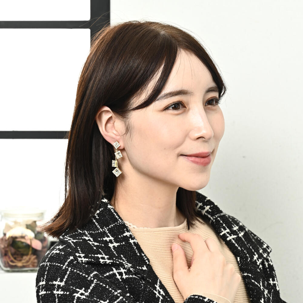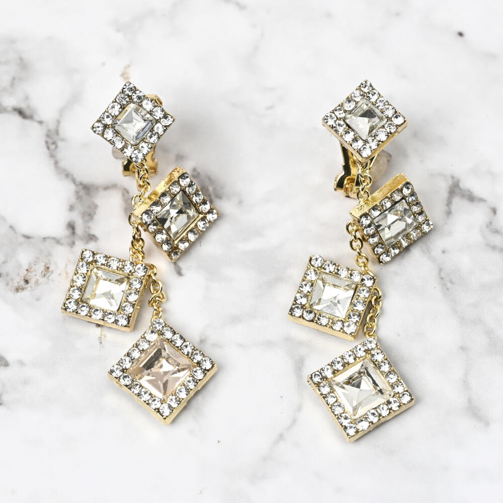 イヤリング レディース ゴールド ビジュ ラインストーン キラキラ 揺れる 高見え E