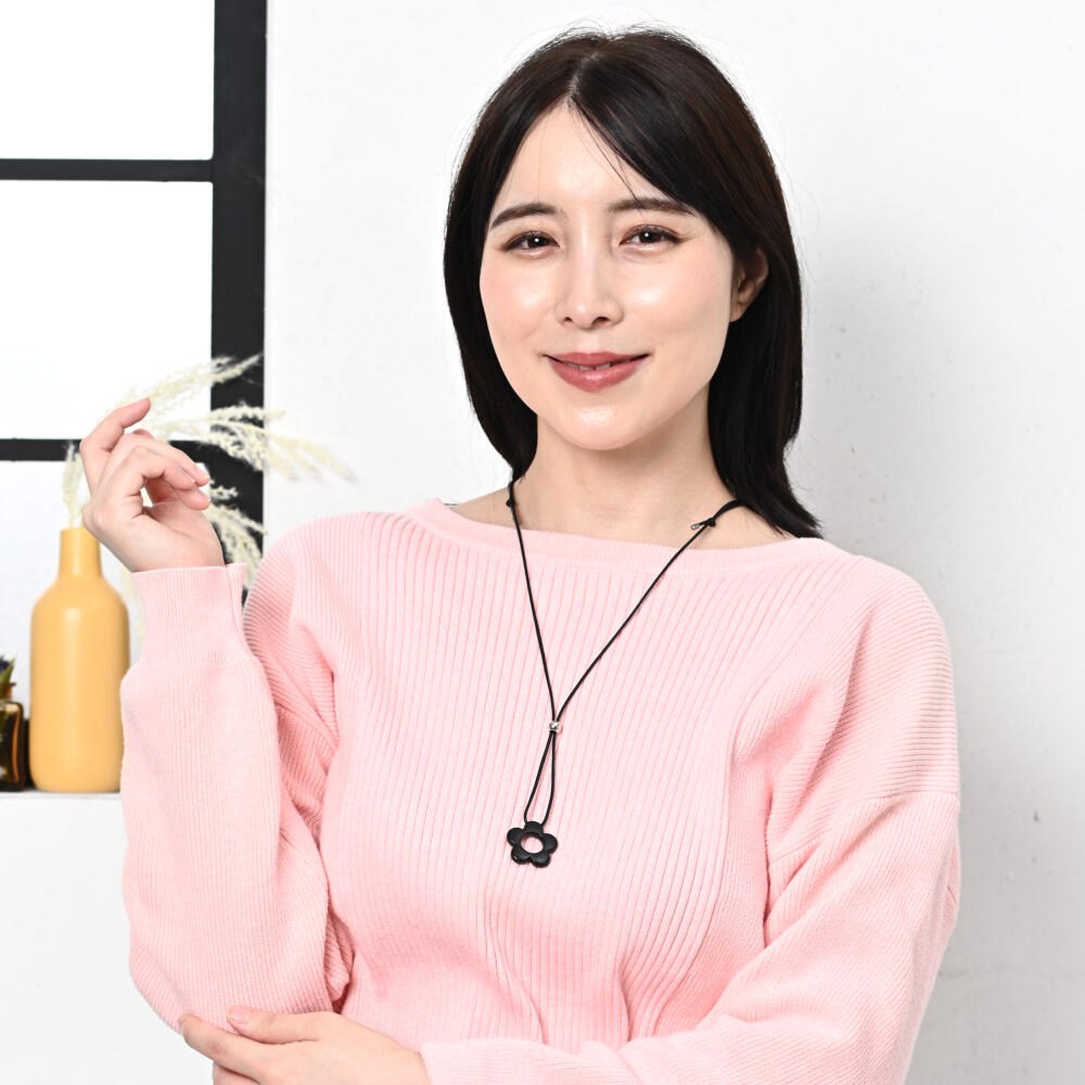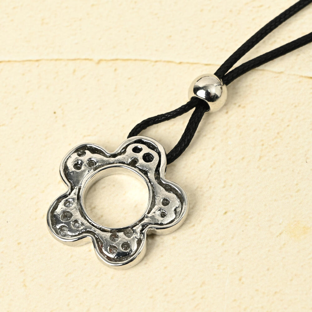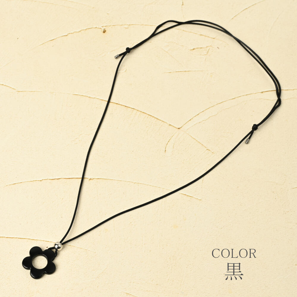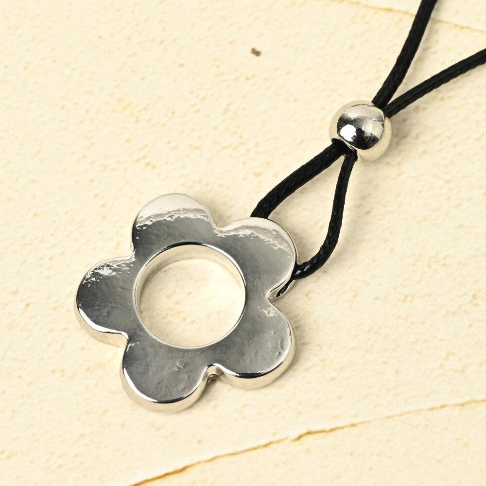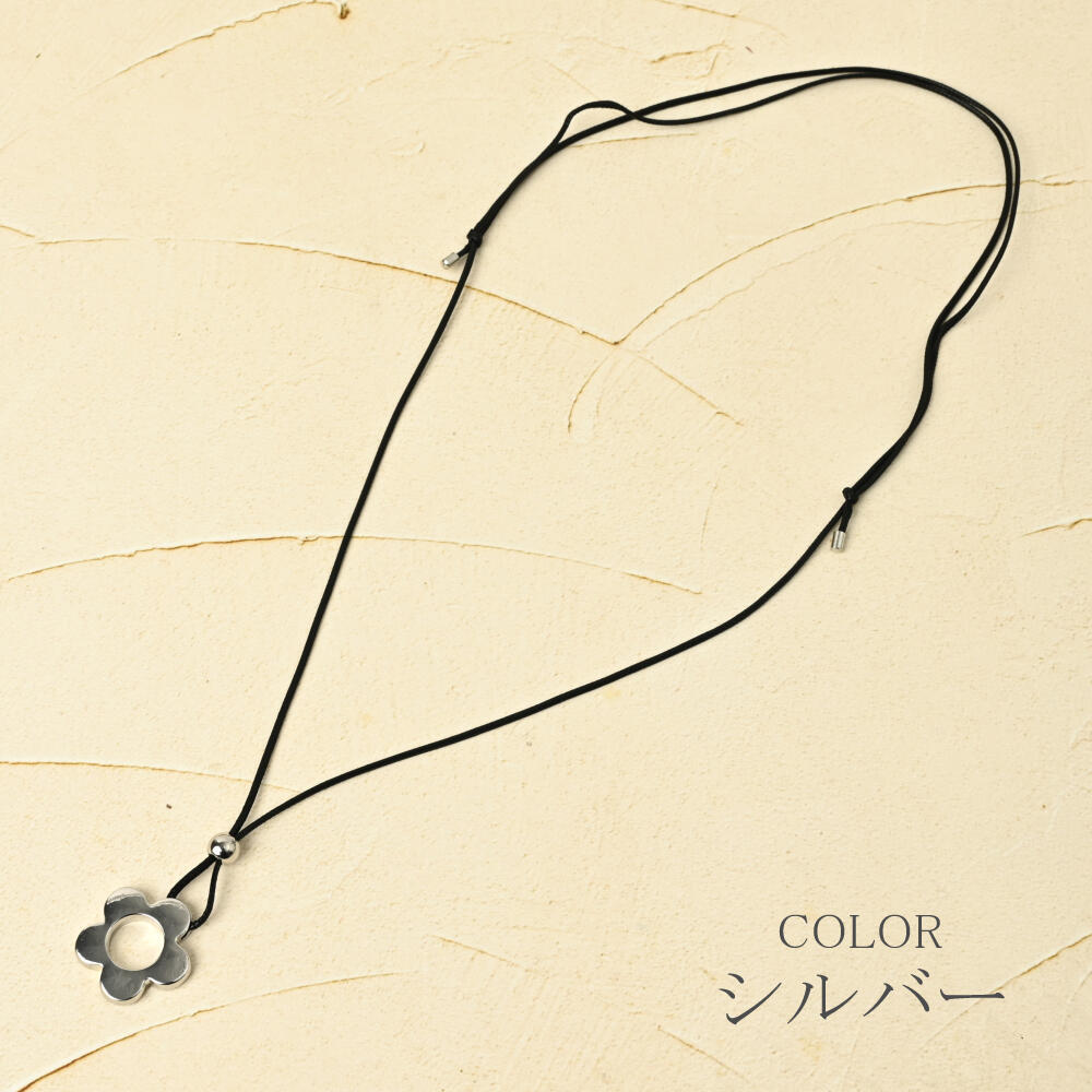 ネックレス ペンダント レディース 花 フラワー メタル シルバー 黒 紐ネックレス N