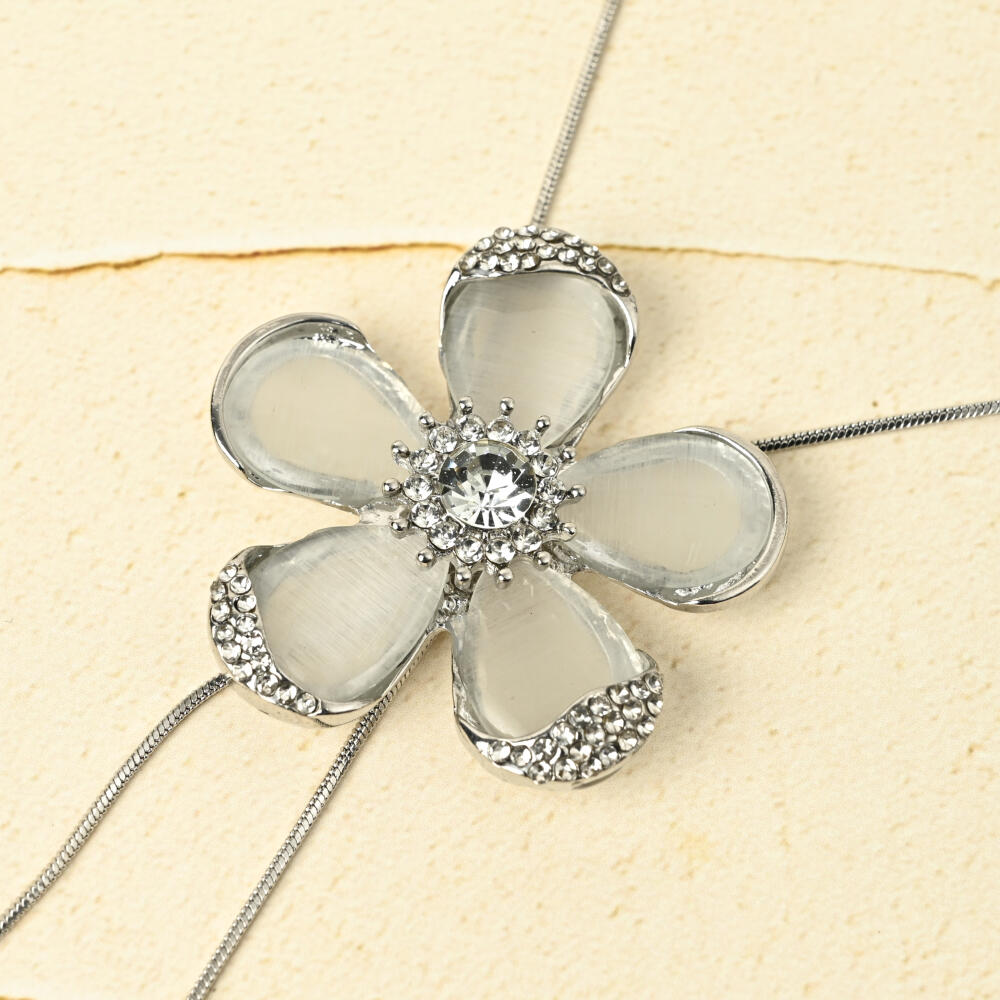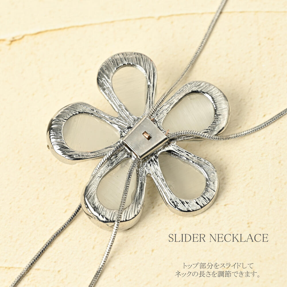 ネックレス スライダー レディース メタル ビジュ 花 フラワー キラキラ 高見え プレゼント N