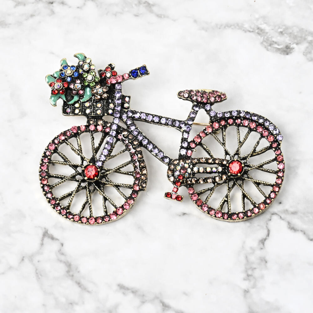 ブローチ レディース 自転車 花かご フラワー 可愛い キラキラ マルチカラー プレゼント BR