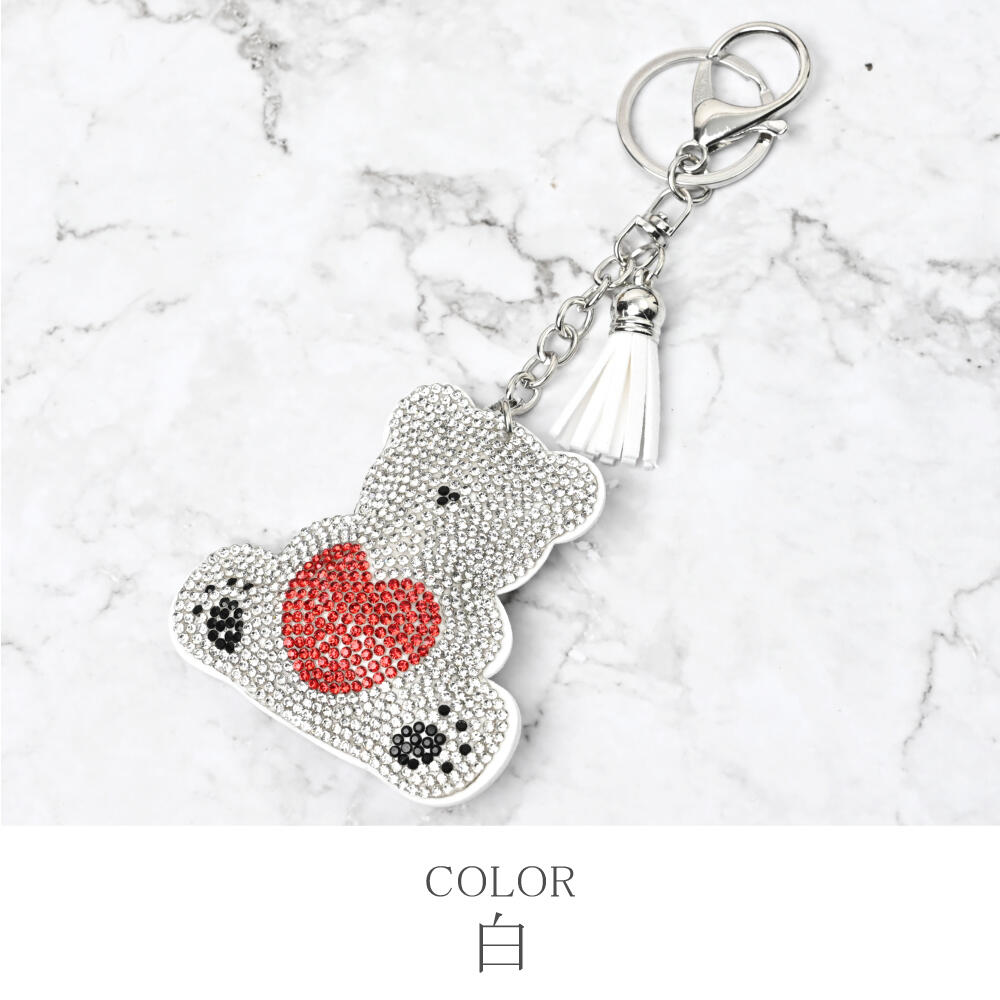 キーホルダー バッグチャーム レディース クマ くま シロクマ ハート キラキラ 可愛い プレゼント KH