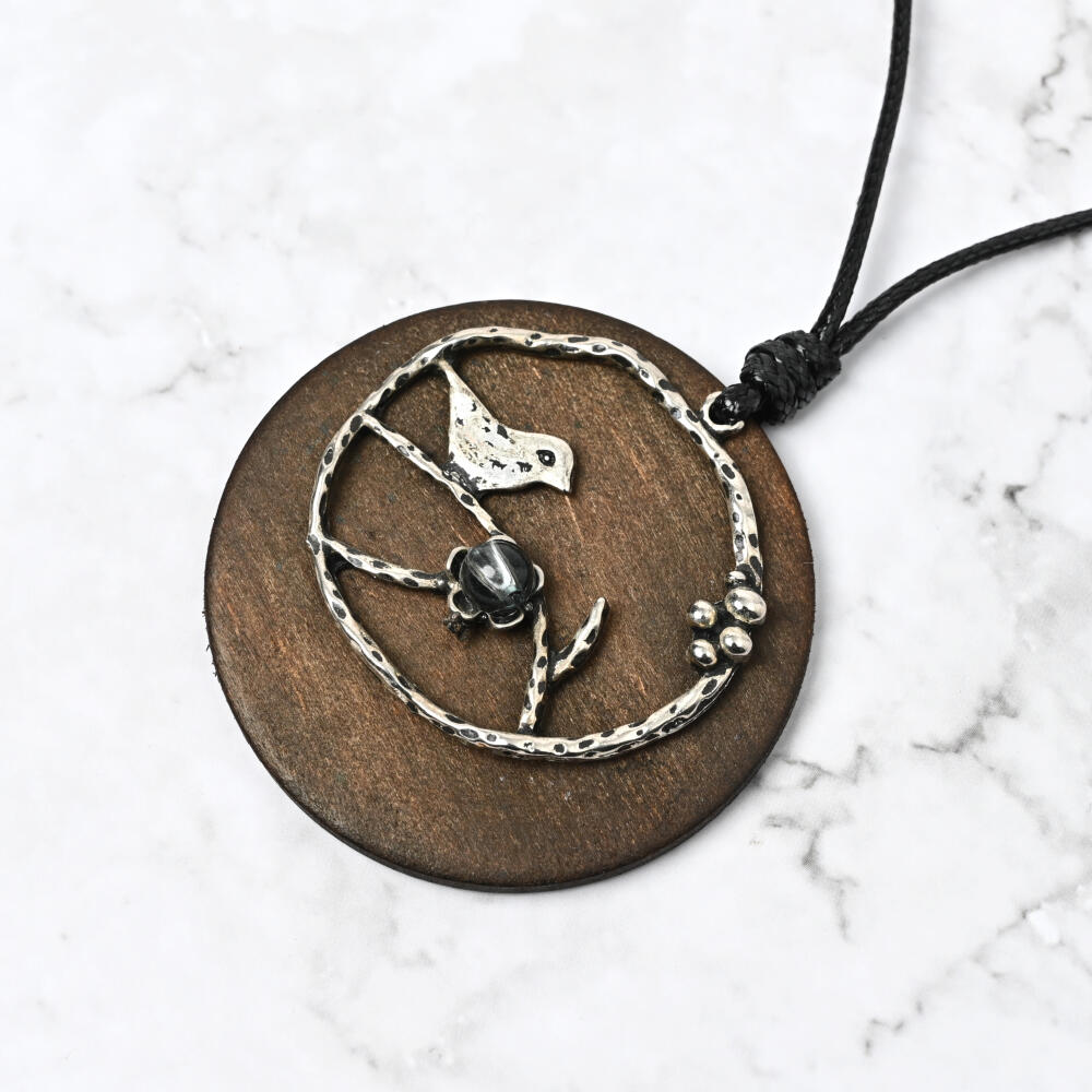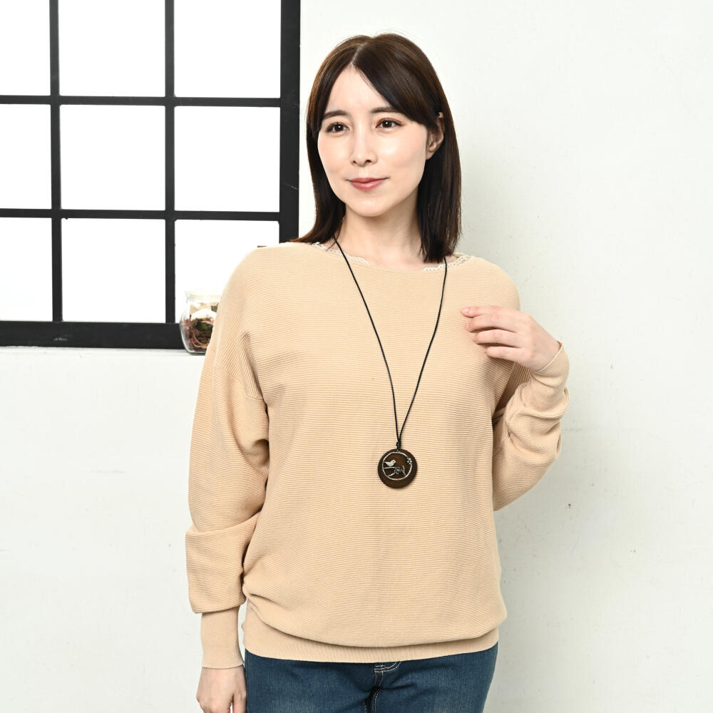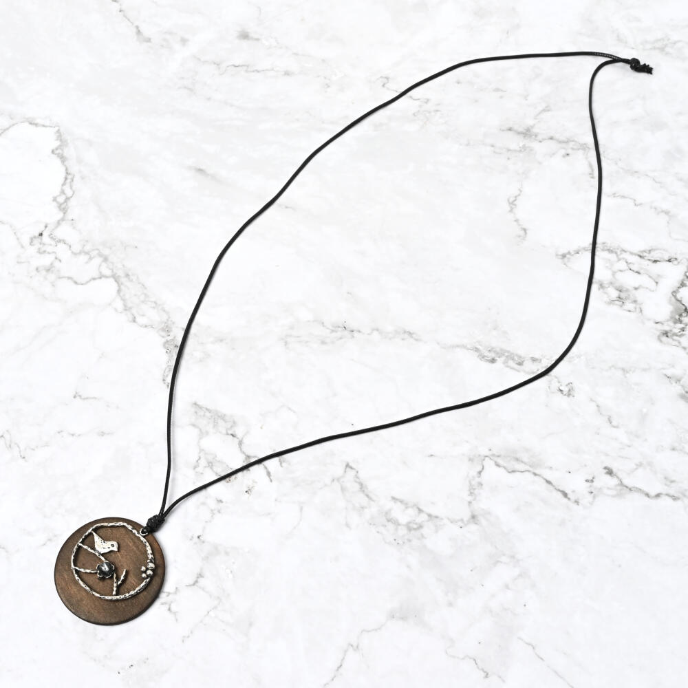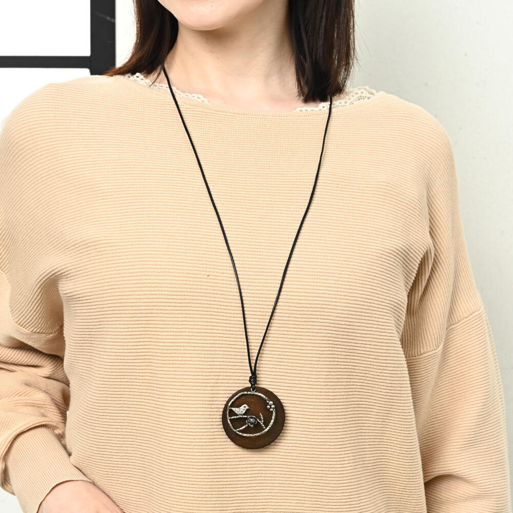 ネックレス レディース ウッド 小鳥 メタル 異素材 紐ネックレス ブラウン お洒落 カジュアル N